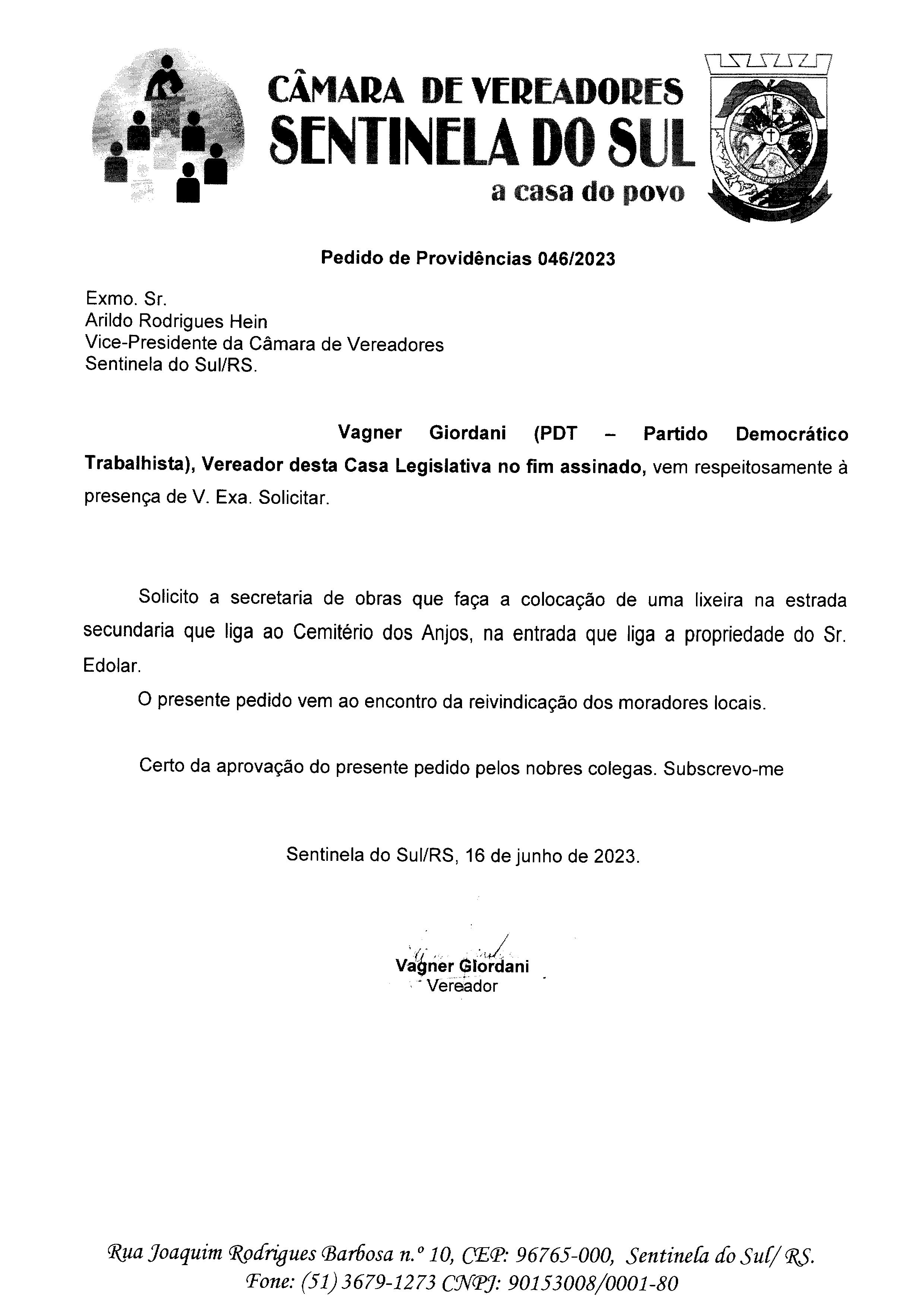 PEDIDO DE PROVIDÊNCIAS Nº 046/2023