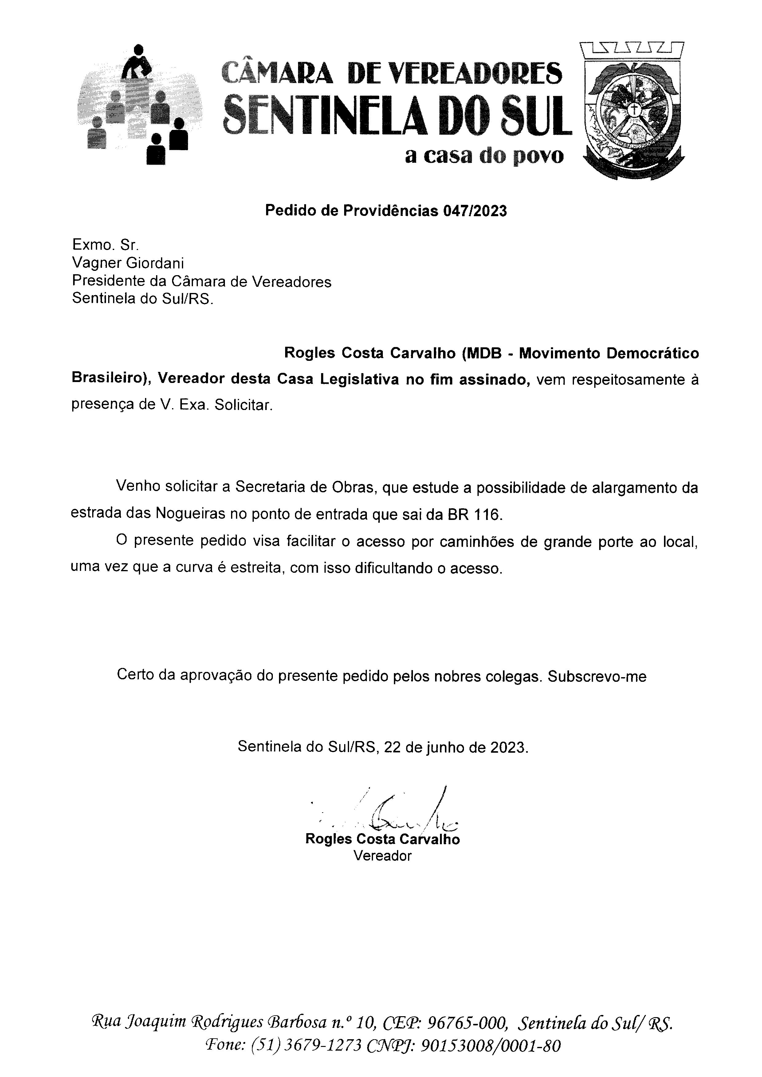 PEDIDO DE PROVIDÊNCIAS Nº 047/2023