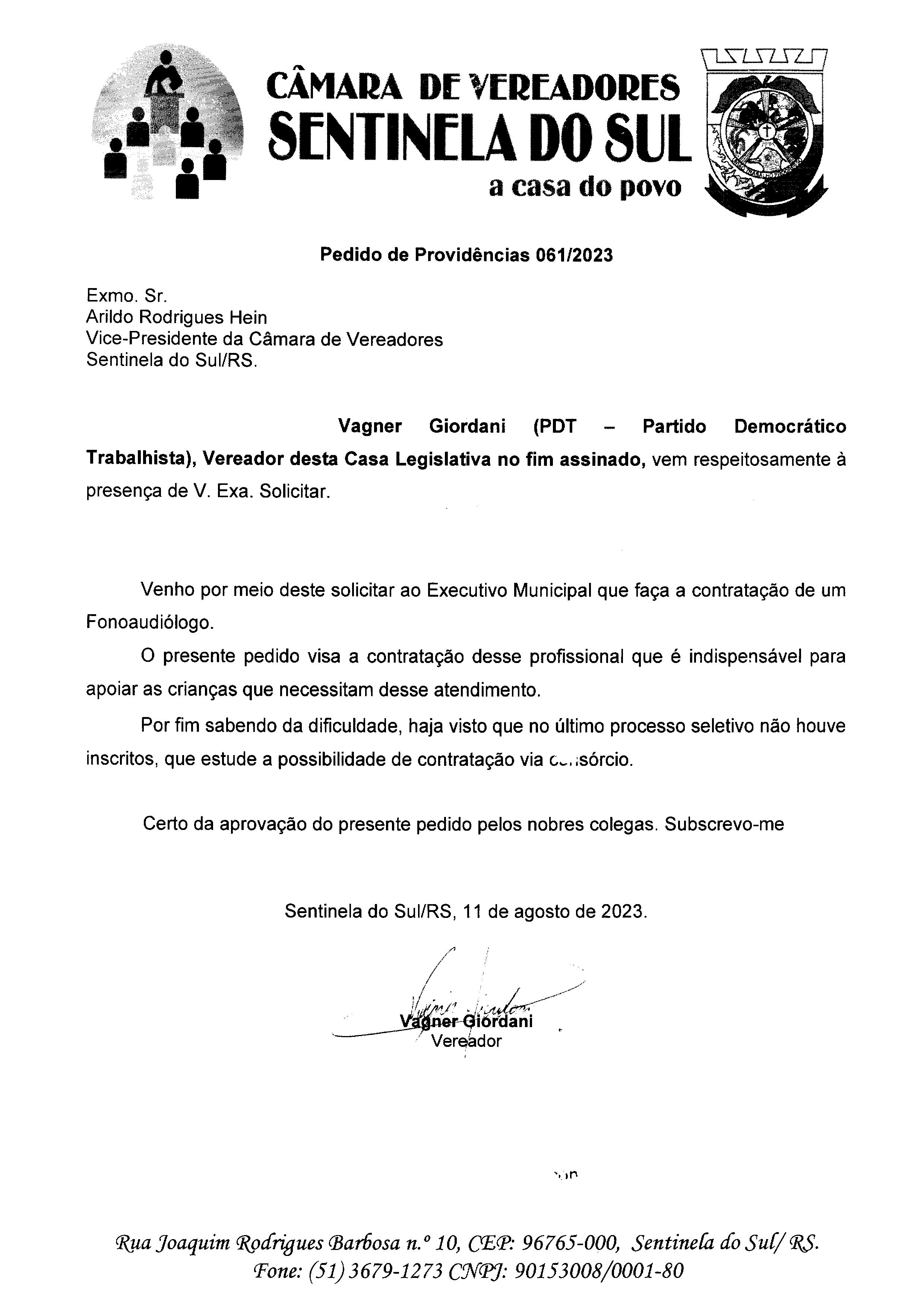 PEDIDO DE PROVIDÊNCIAS Nº 061/2023