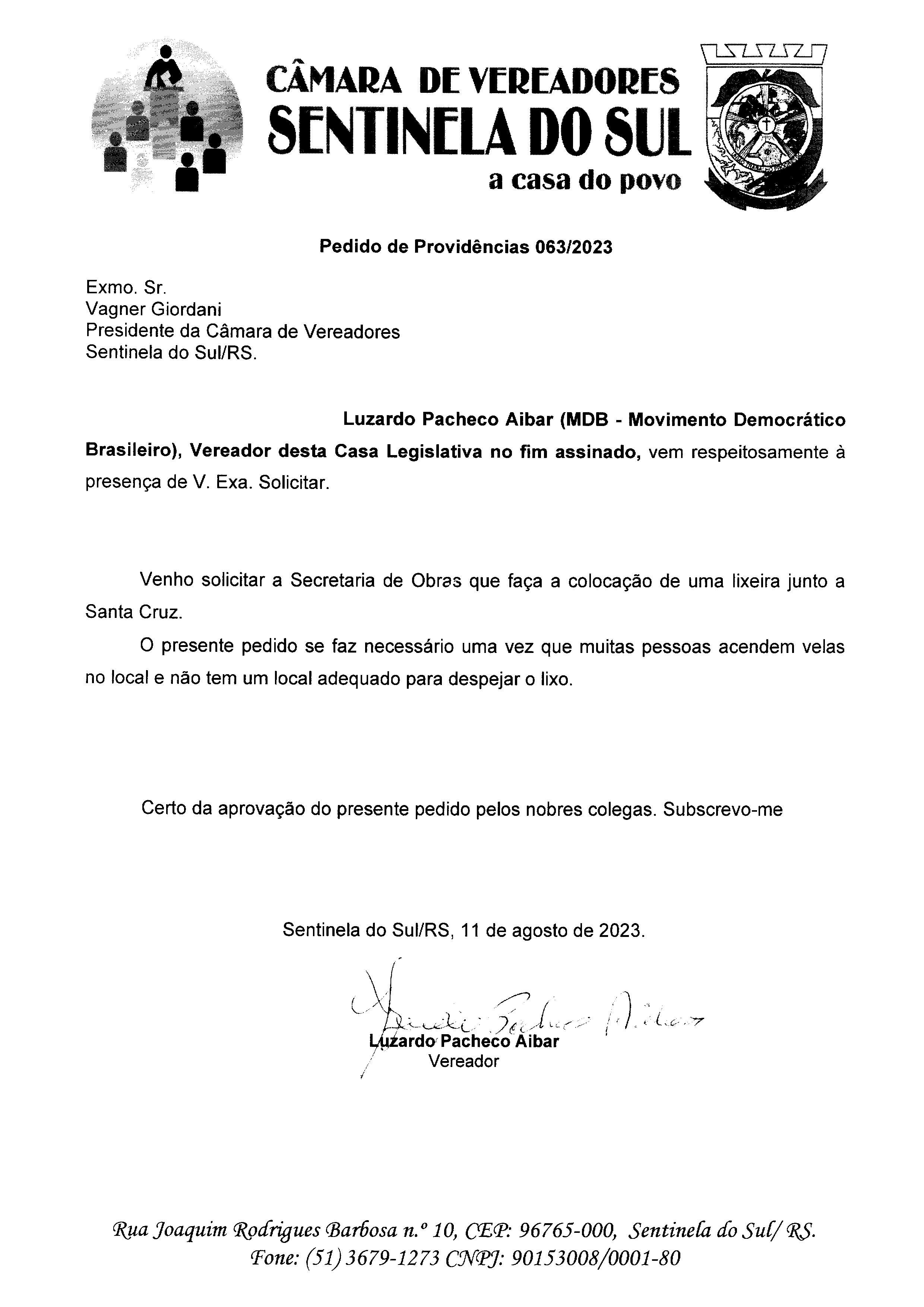 PEDIDO DE PROVIDÊNCIAS Nº 063/2023