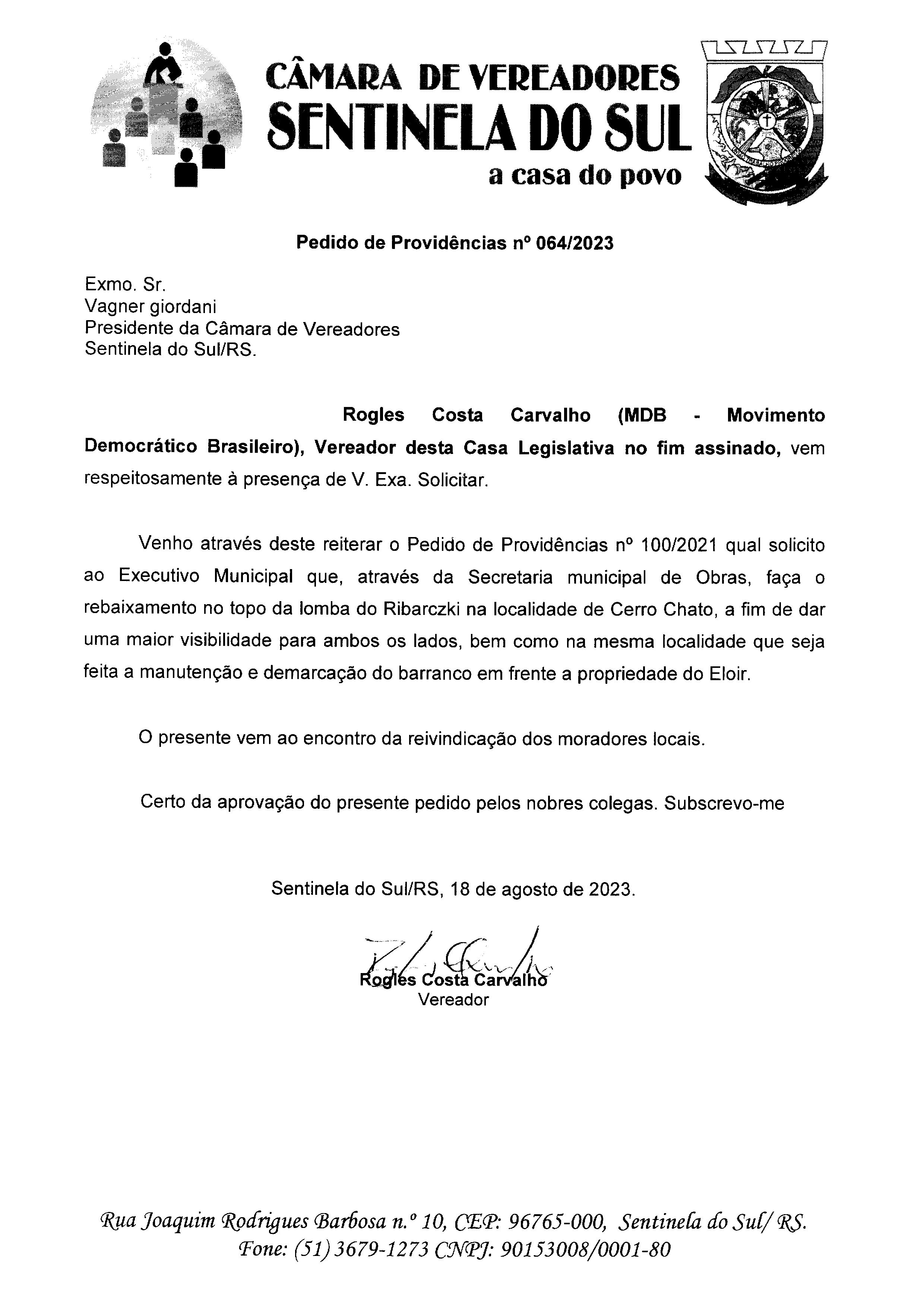 PEDIDO DE PROVIDÊNCIAS Nº 064/2023