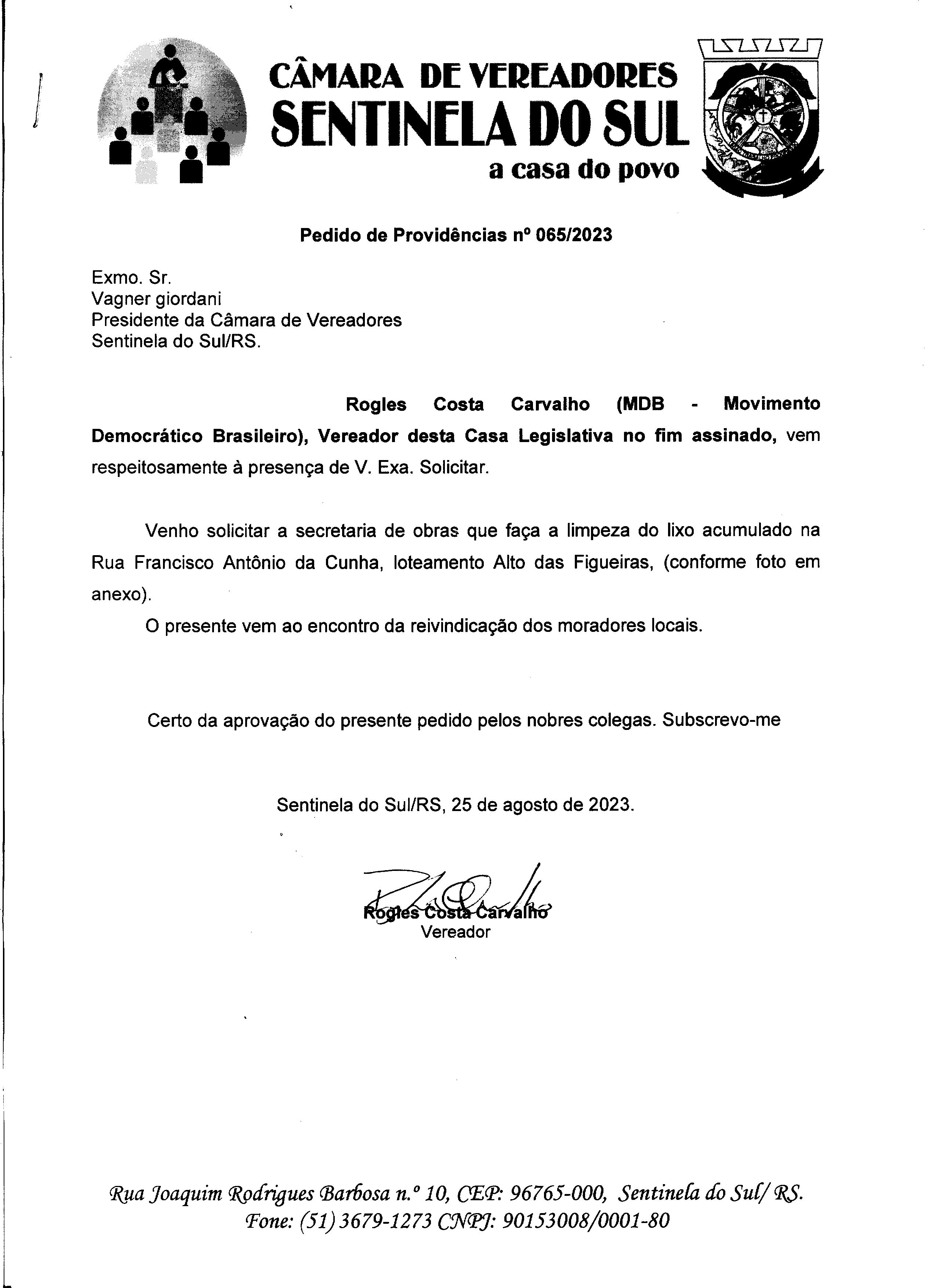 PEDIDO DE PROVIDÊNCIAS Nº 065/2023