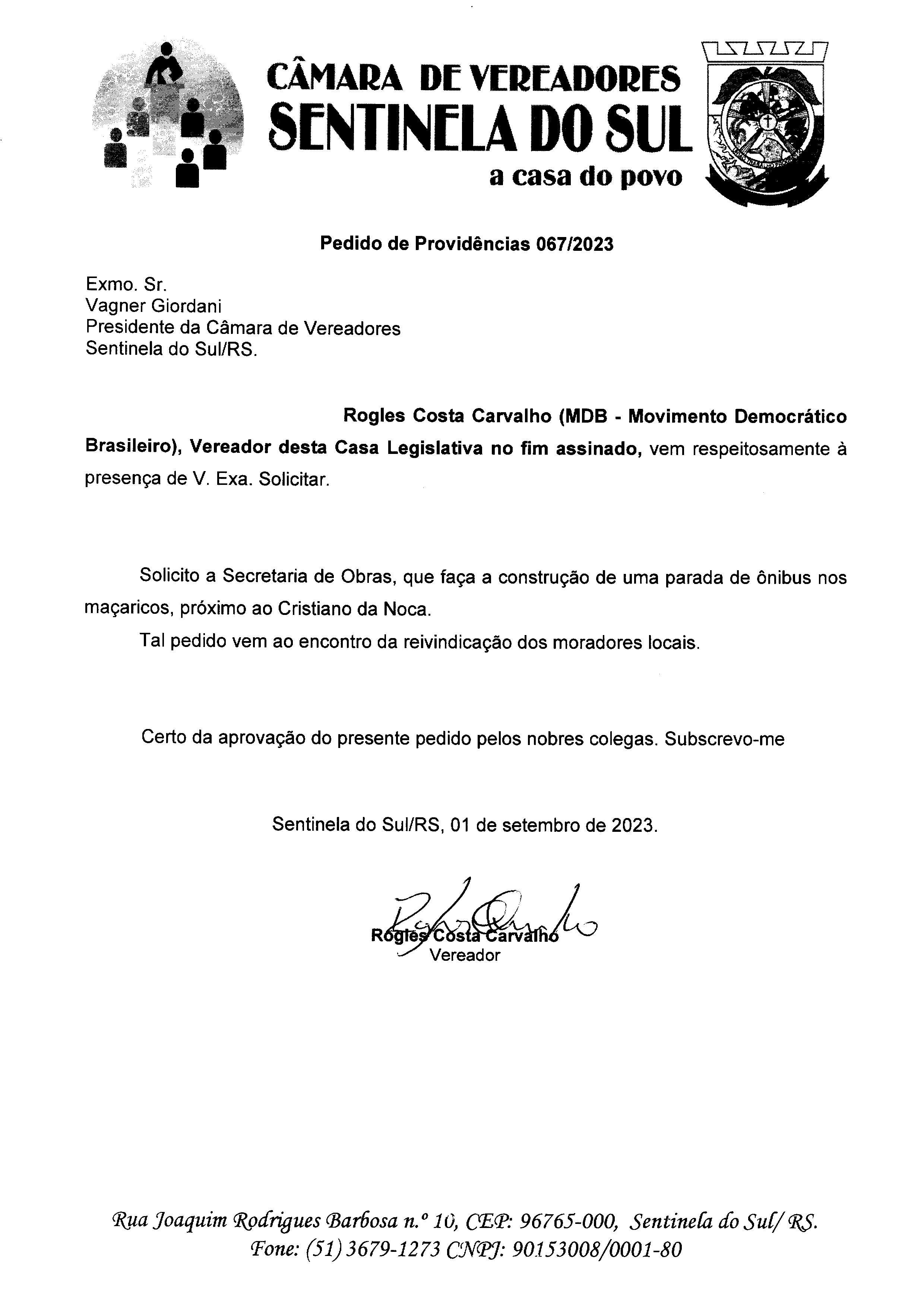 PEDIDO DE PROVIDÊNCIAS Nº 067/2023
