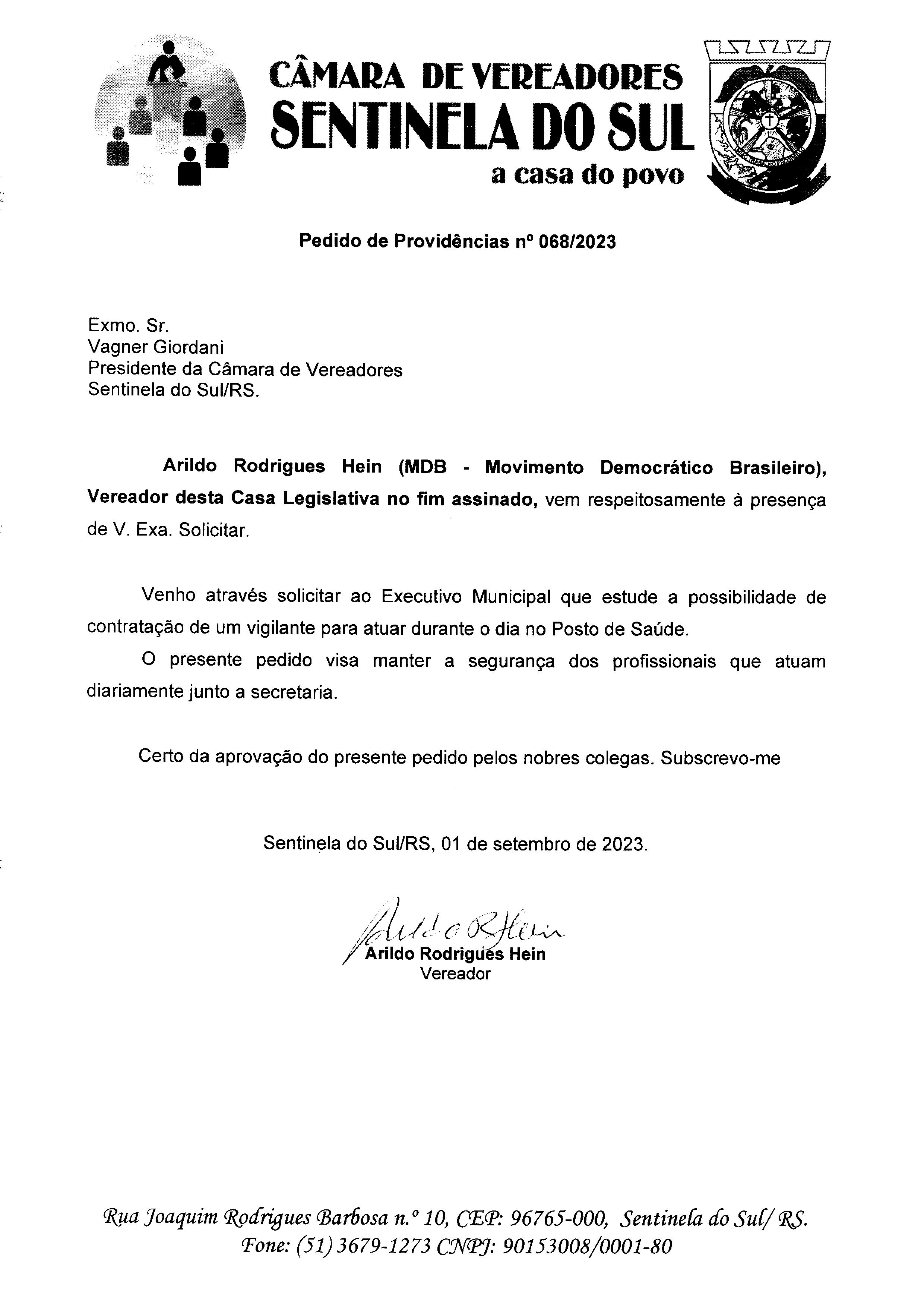PEDIDO DE PROVIDÊNCIAS Nº 068/2023