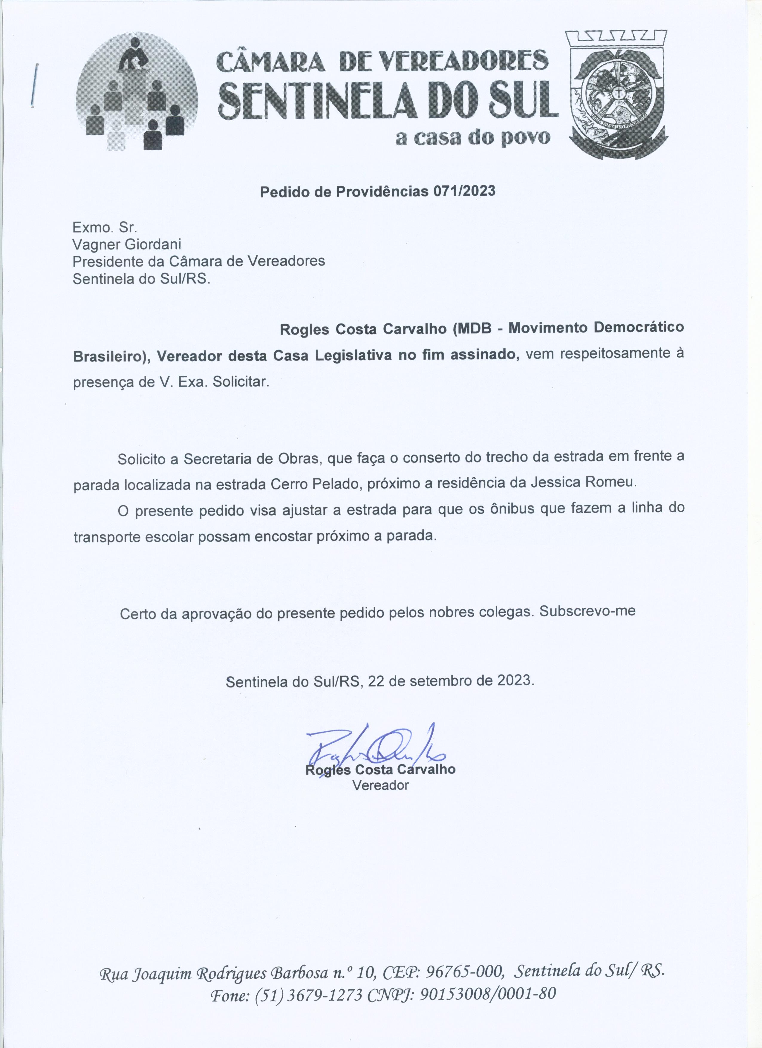 PEDIDO DE PROVIDÊNCIAS Nº 071/2023