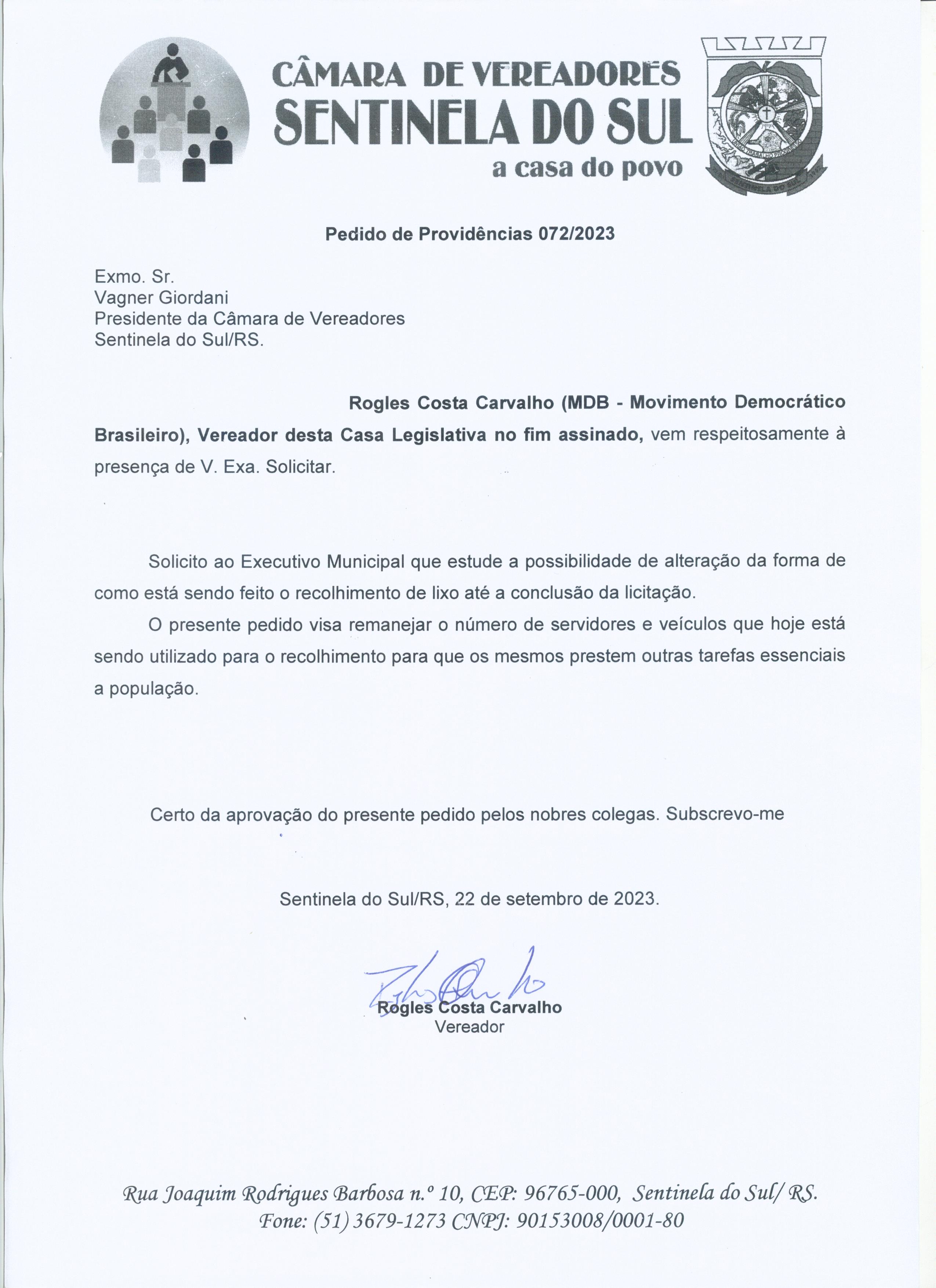 PEDIDO DE PROVIDÊNCIAS Nº 072/2023