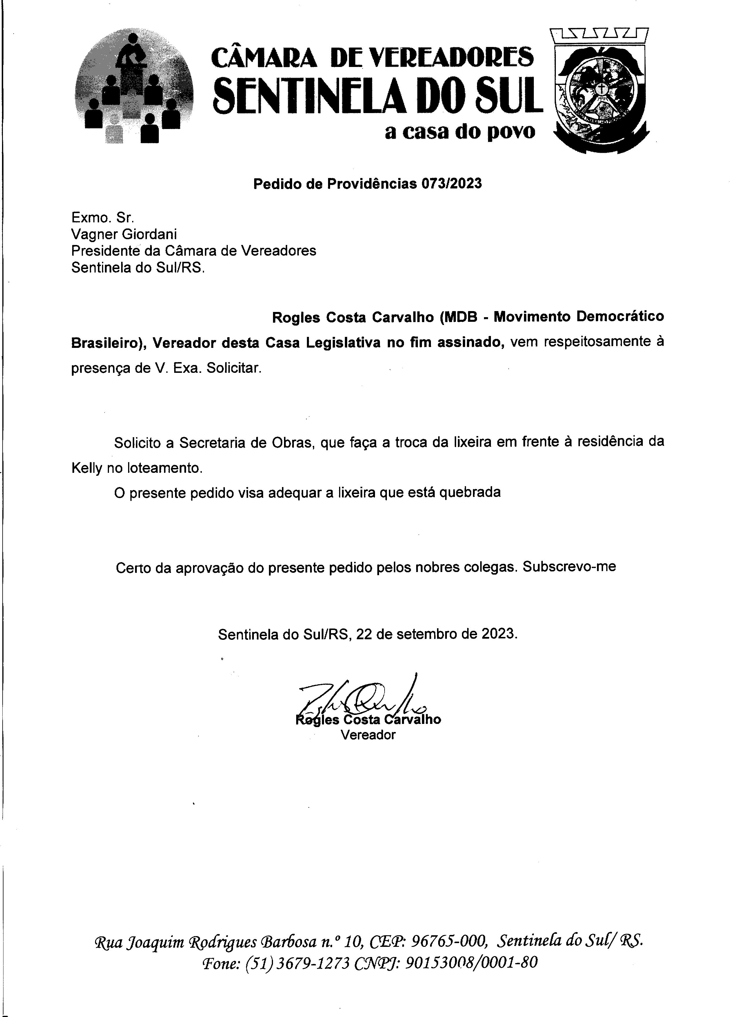 PEDIDO DE PROVIDÊNCIAS Nº 073/2023