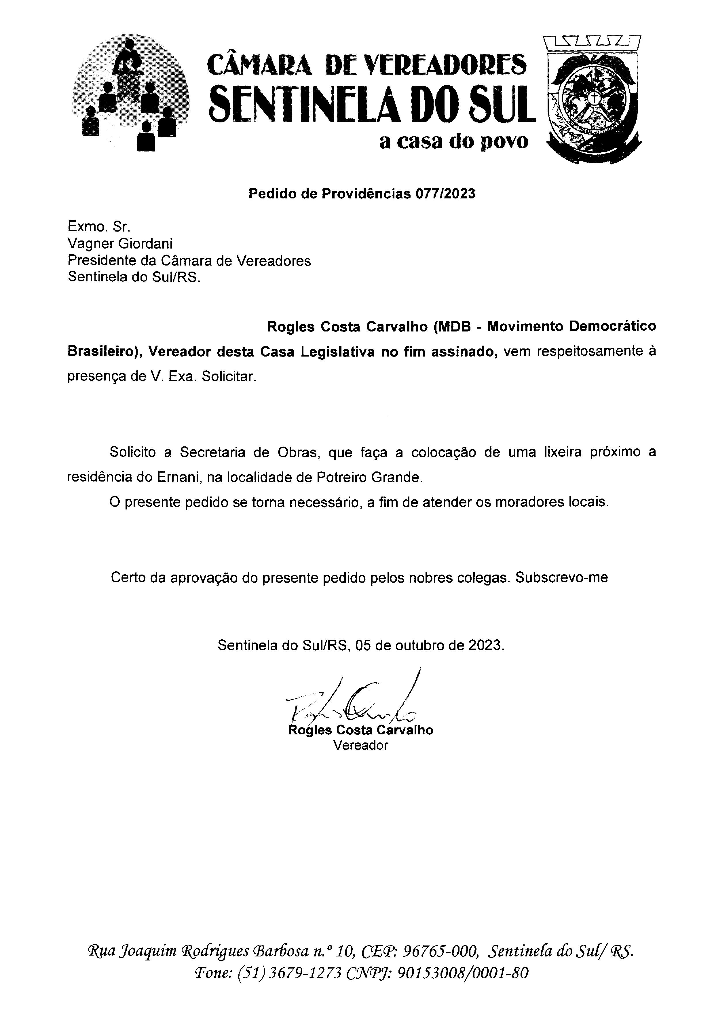 PEDIDO DE PROVIDÊNCIAS Nº 077/2023