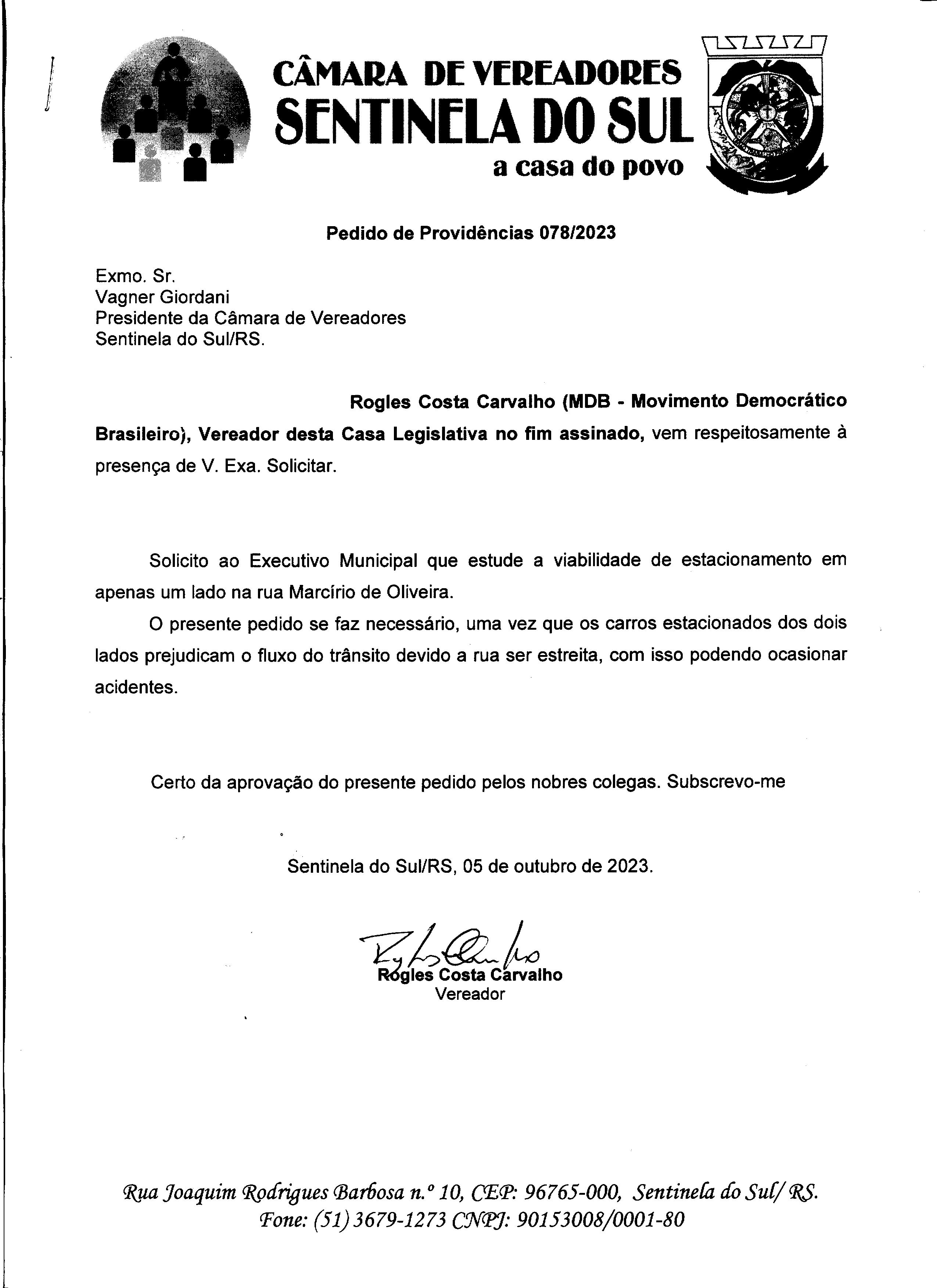 PEDIDO DE PROVIDÊNCIAS Nº 078/2023