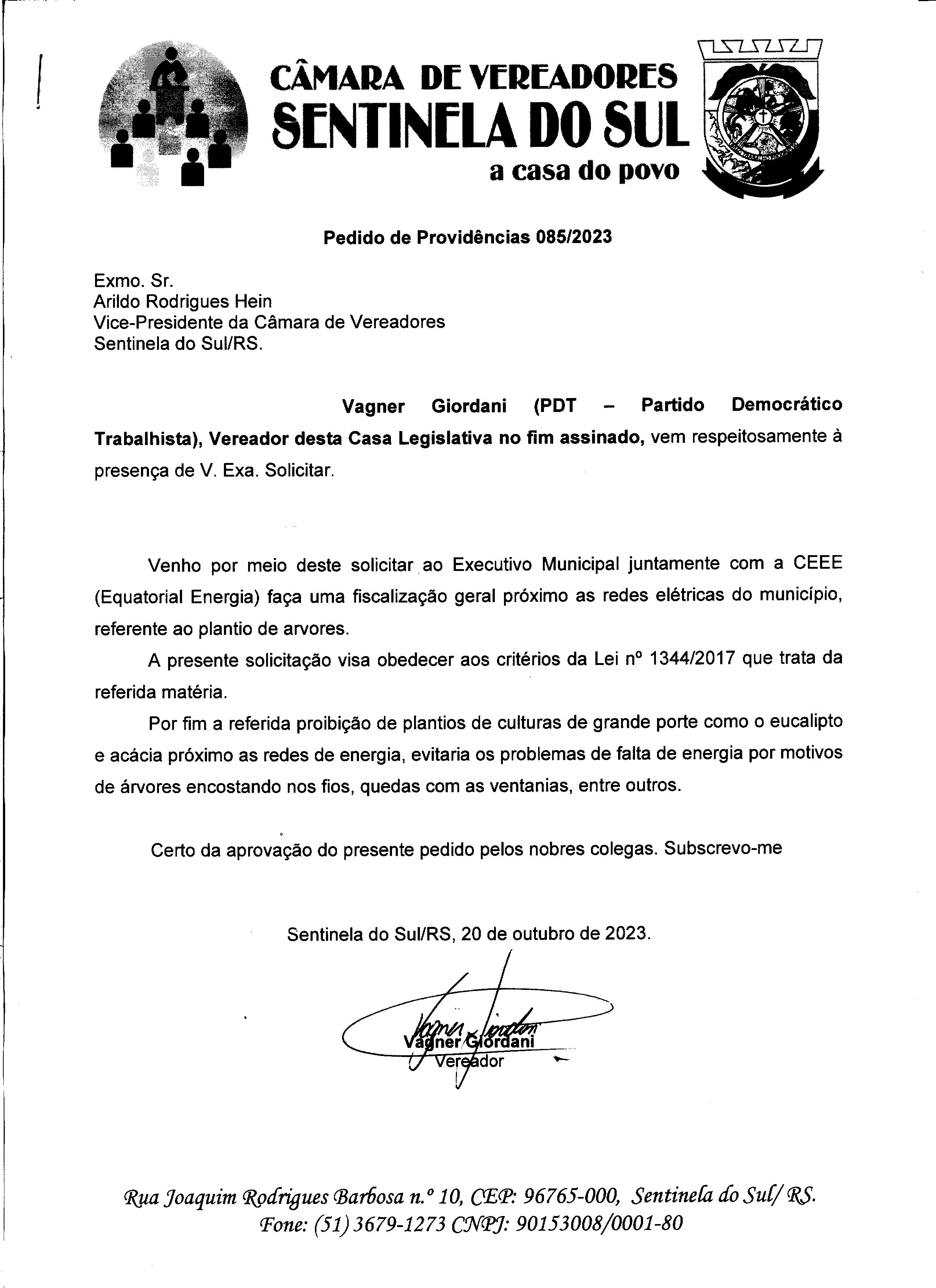 PEDIDO DE PROVIDÊNCIAS Nº 085/2023