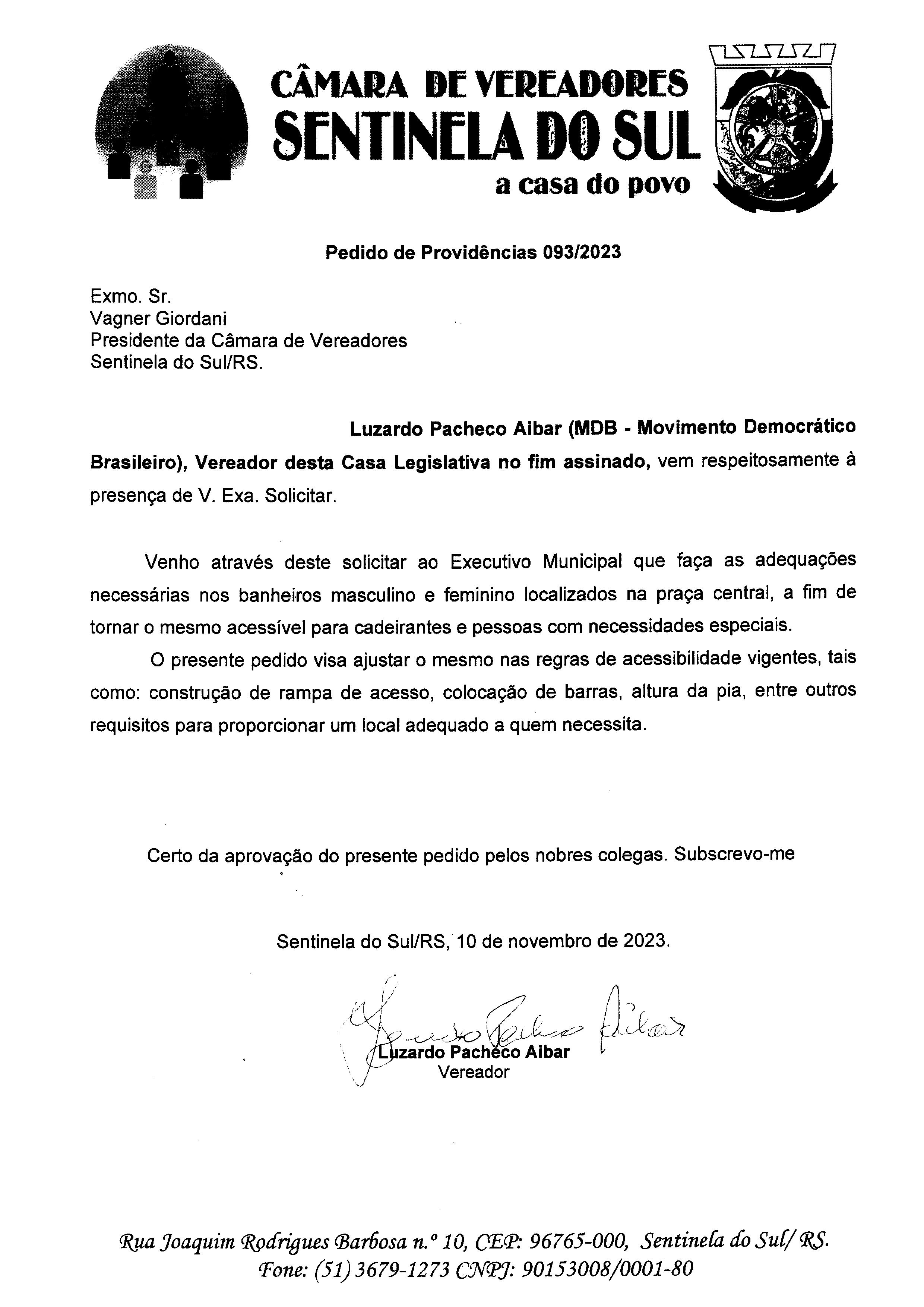 PEDIDO DE PROVIDÊNCIAS Nº 093/2023