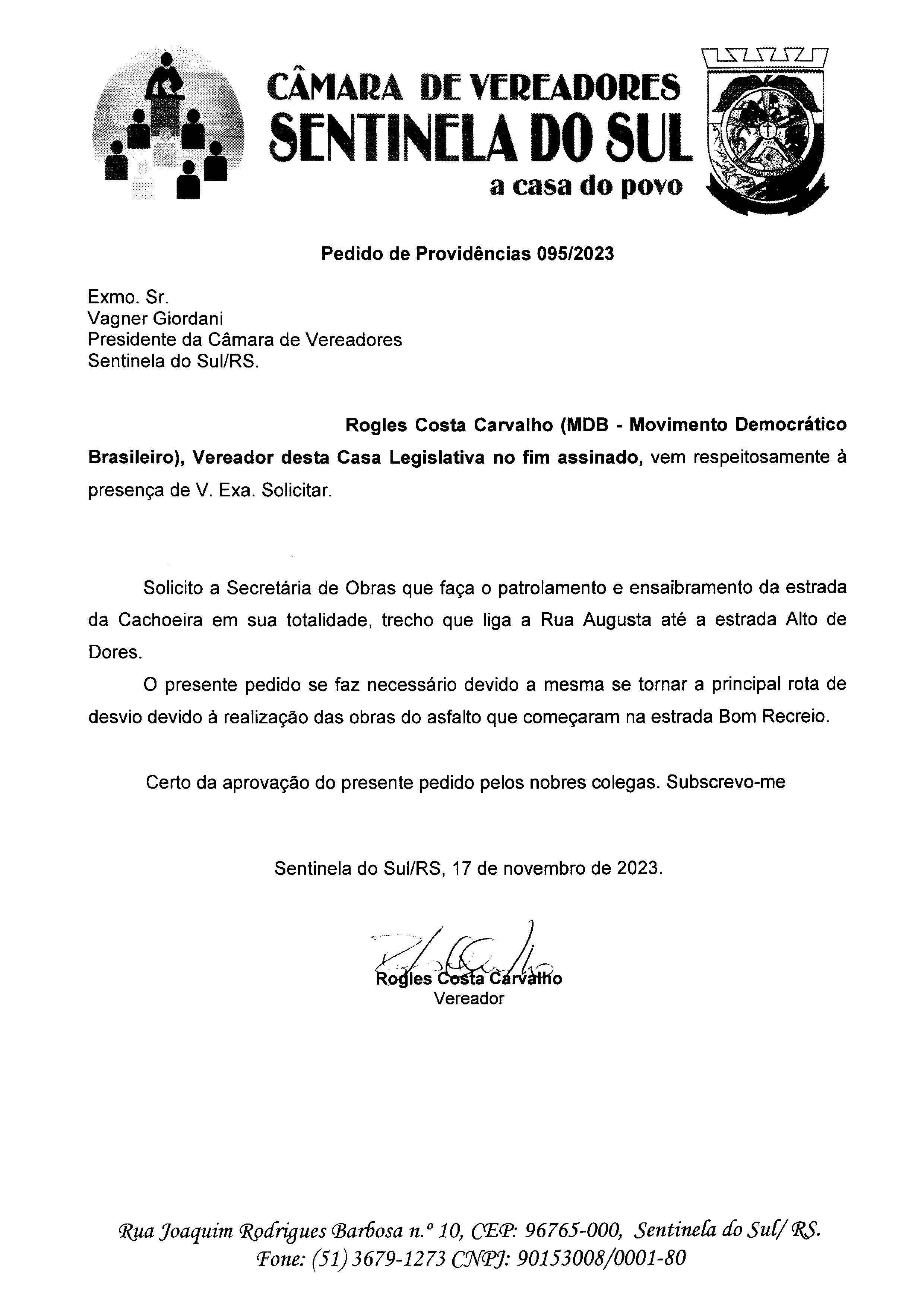 Pedido de Providências de autoria do vereador Rogles Costa Carvalho