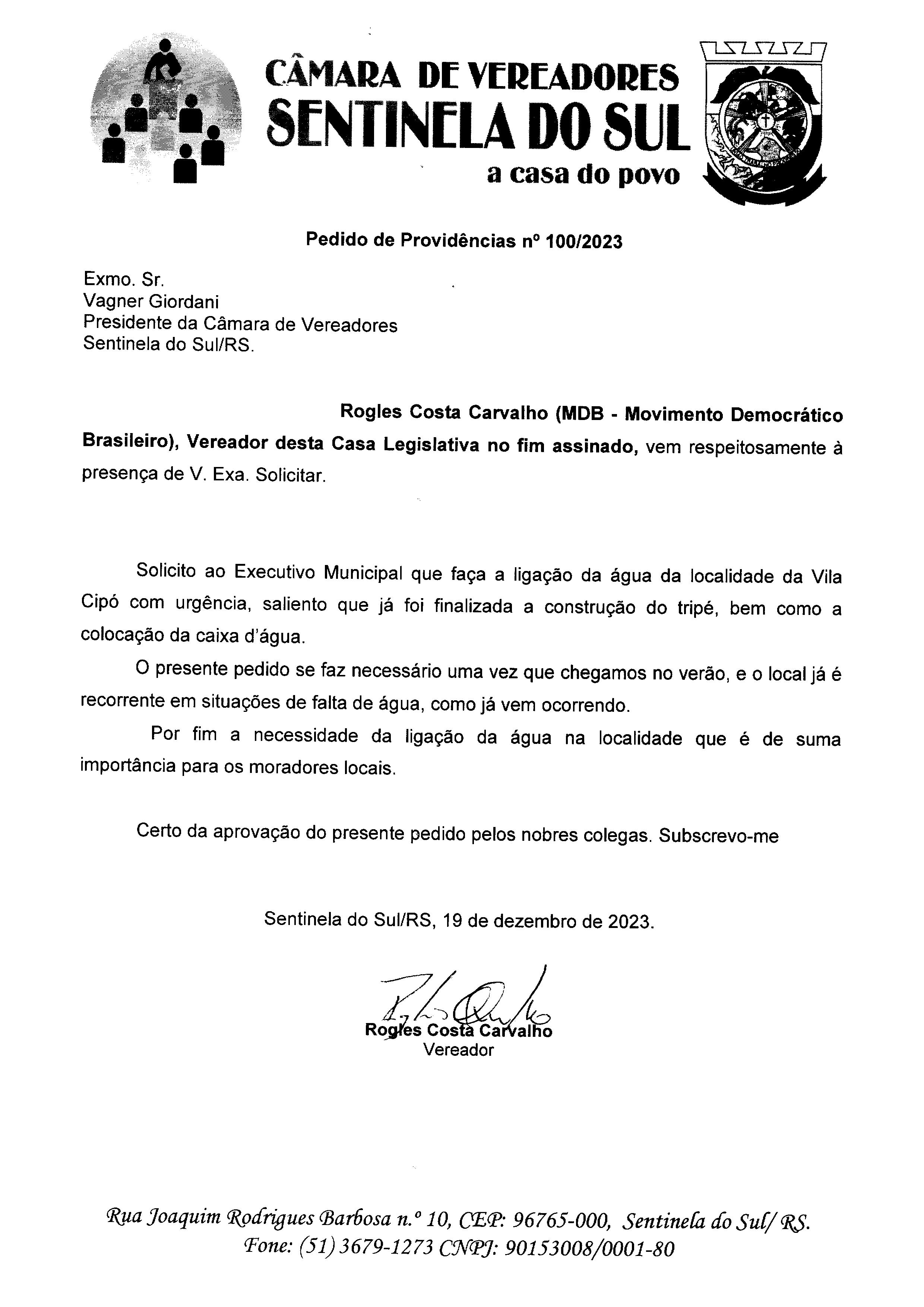 PEDIDO DE PROVIDÊNCIAS Nº 100/2023