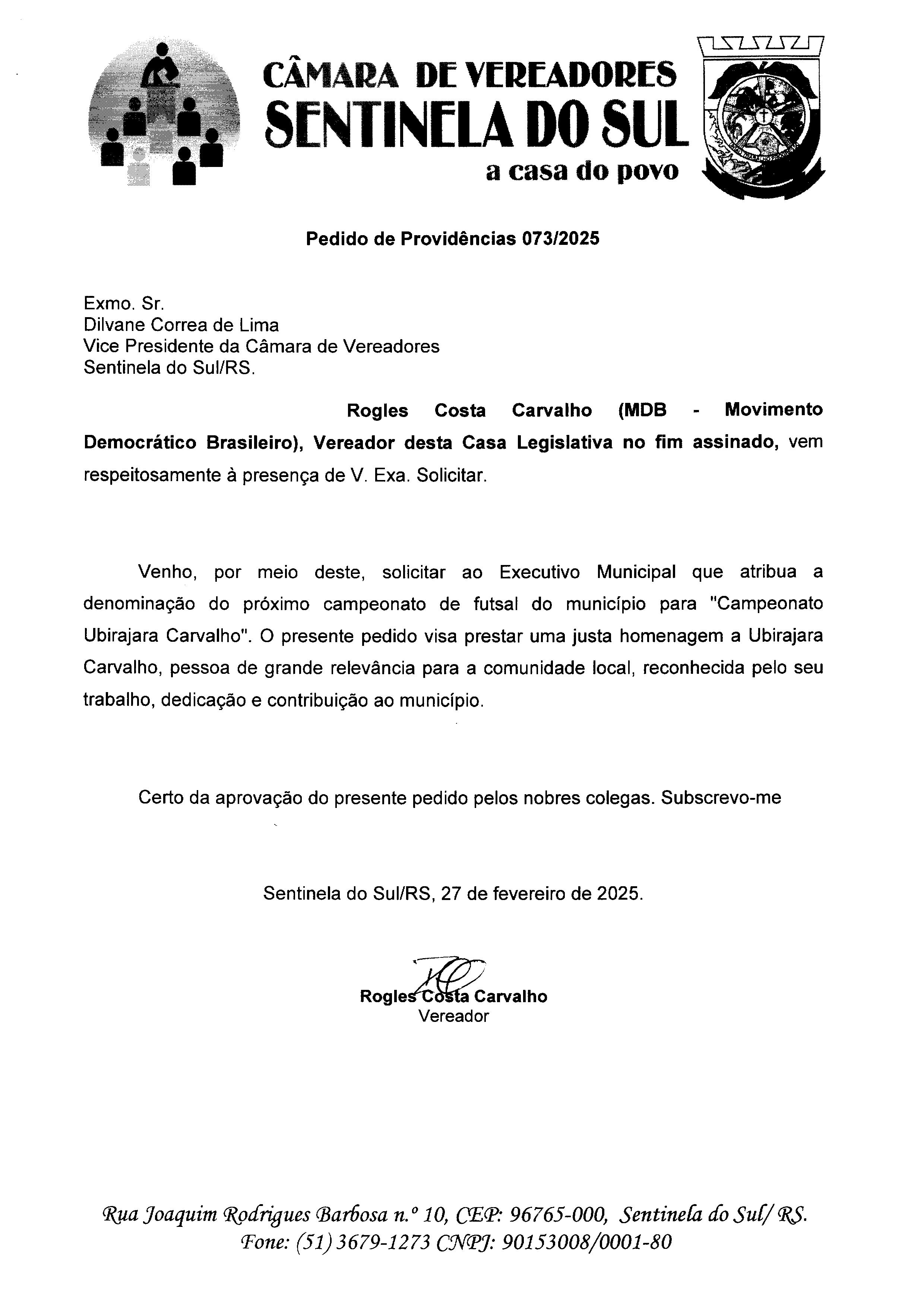 Pedido de Providências nº 073/2025
