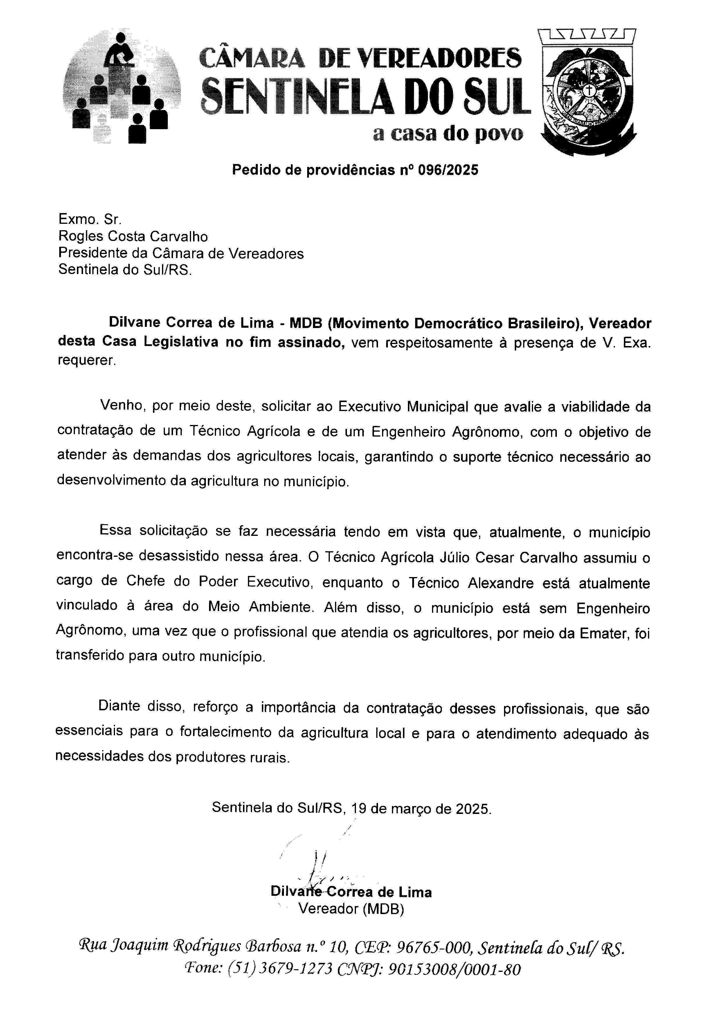 Pedido de Providências nº 096/2025