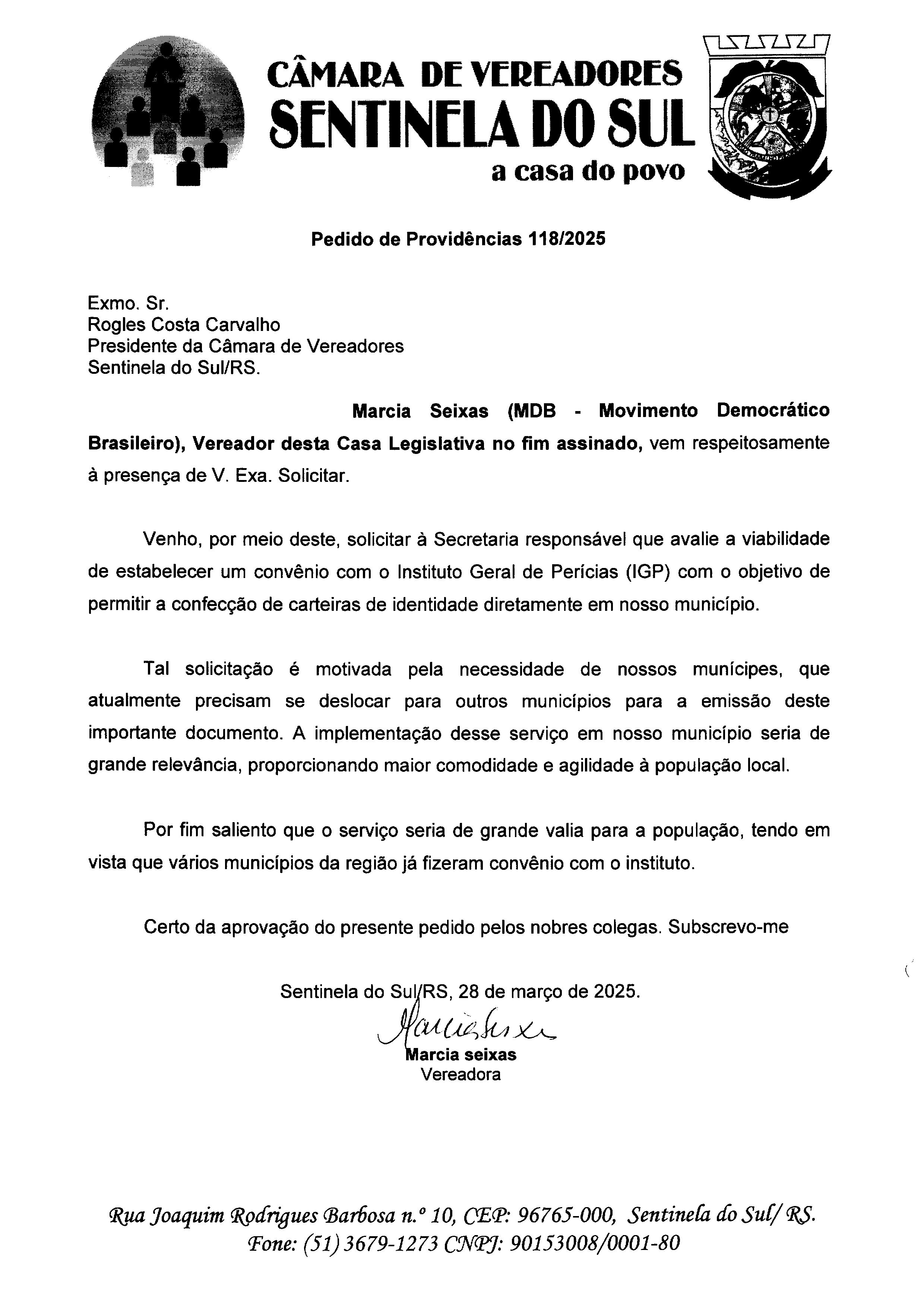 Autoria: Vereadora Marcia Seixas