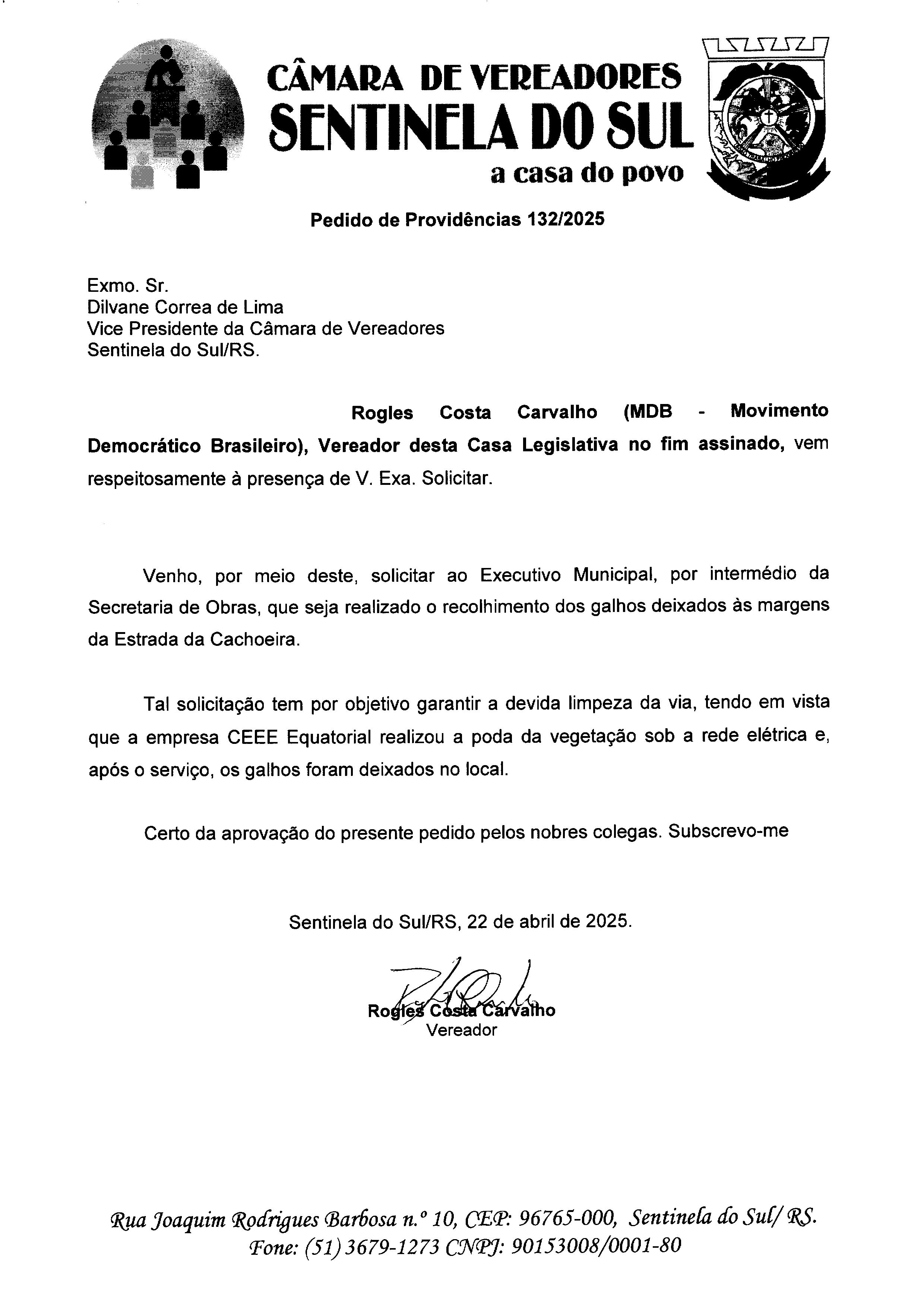 Autoria: Vereador Rogles Costa Carvalho