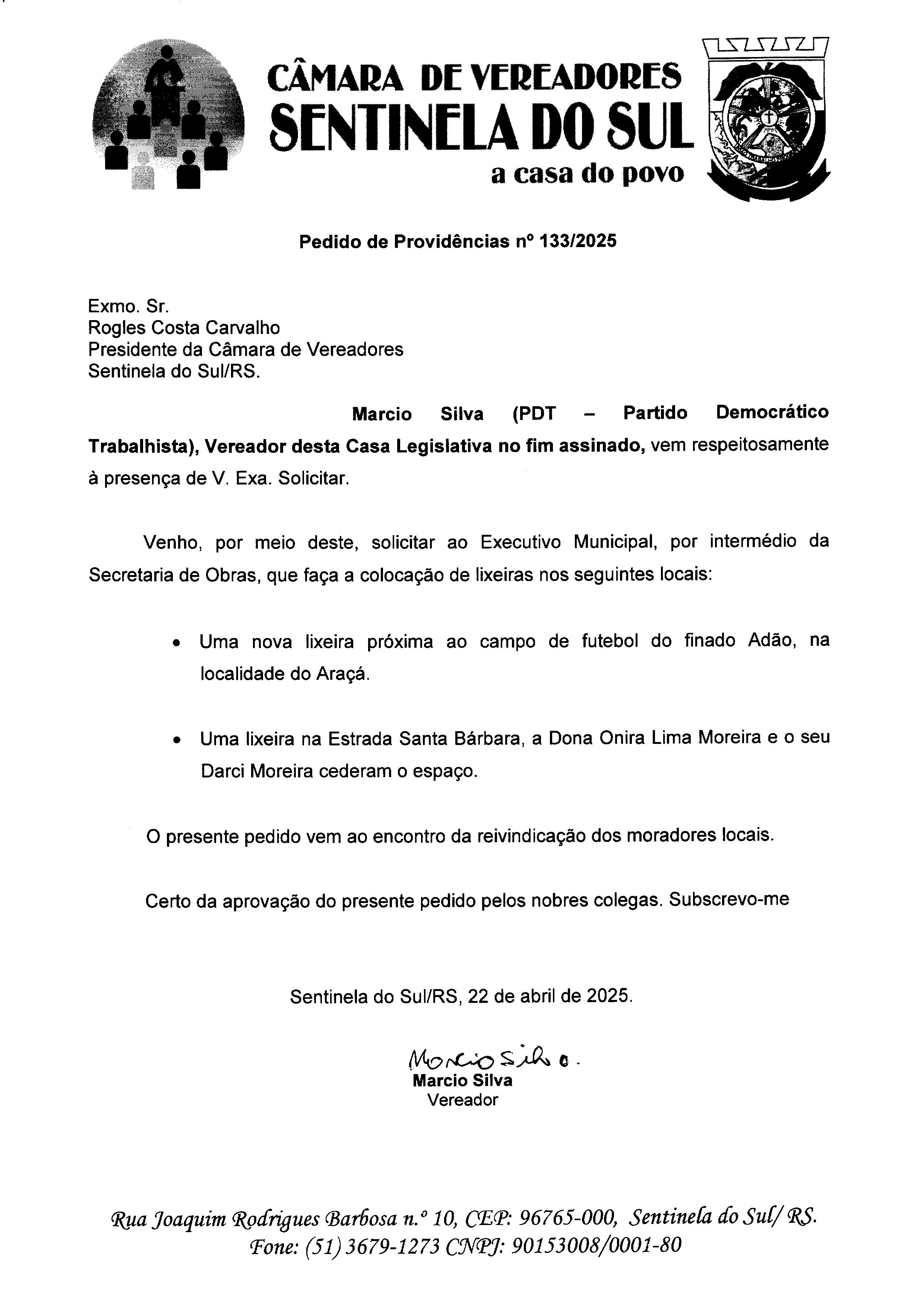 Assunto: Colocação de lixeiras nos seguintes locais: