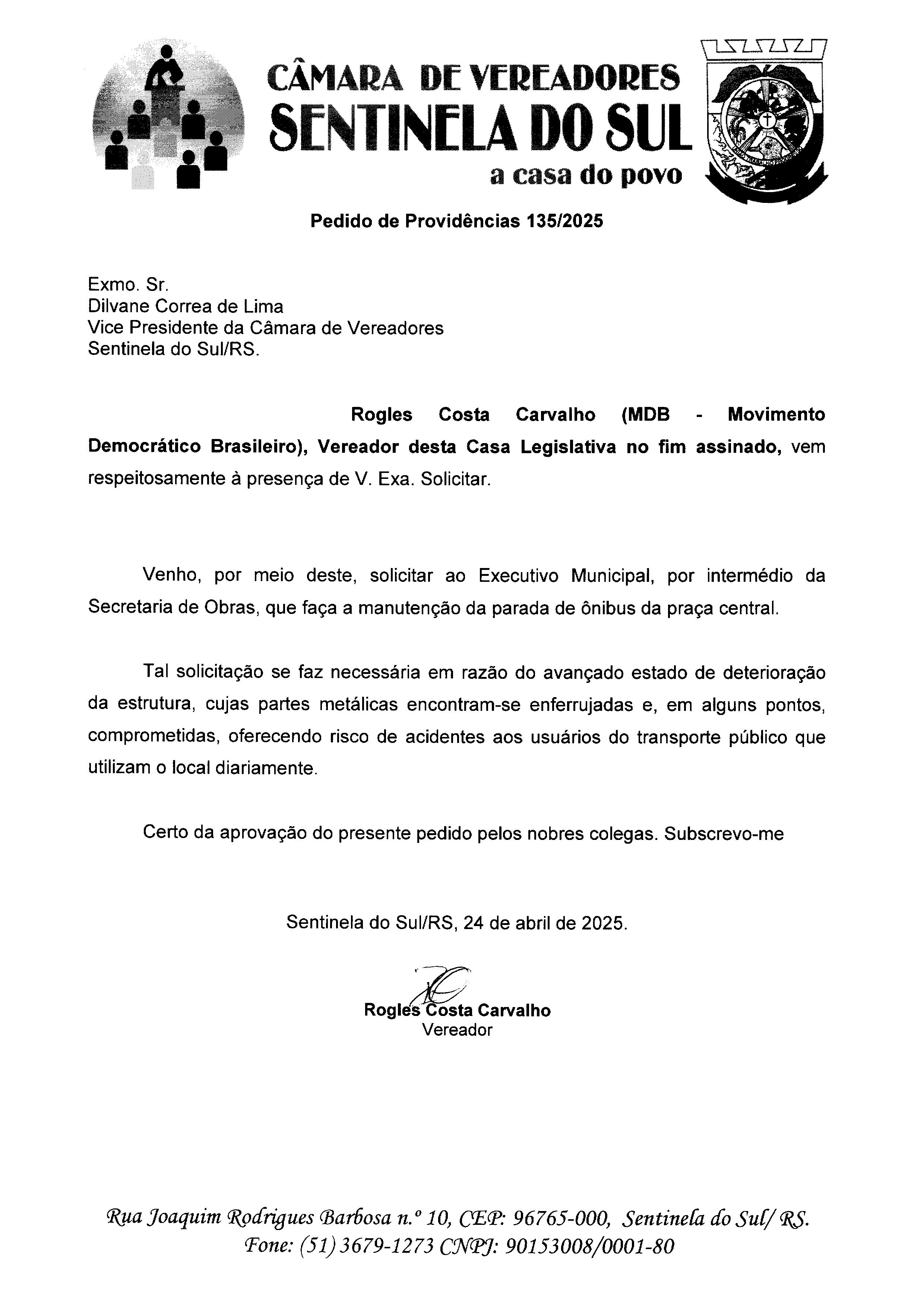 Autoria: Vereador Rogles Costa Carvalho
