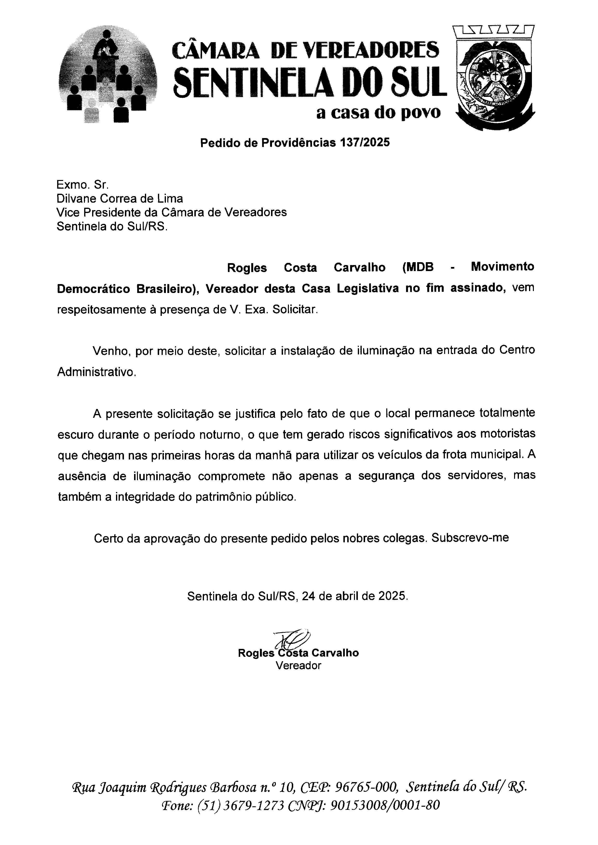 Assunto: Instalação de iluminação na entrada do Centro Administrativo.
