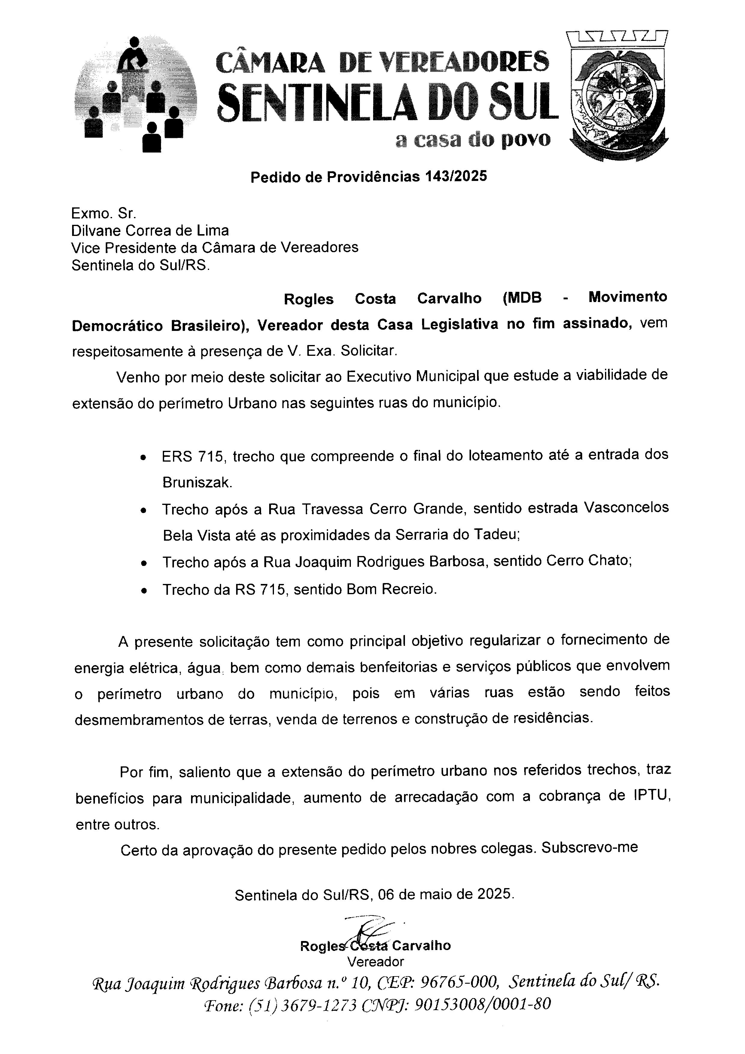 Autoria: Vereador Rogles Costa Carvalho