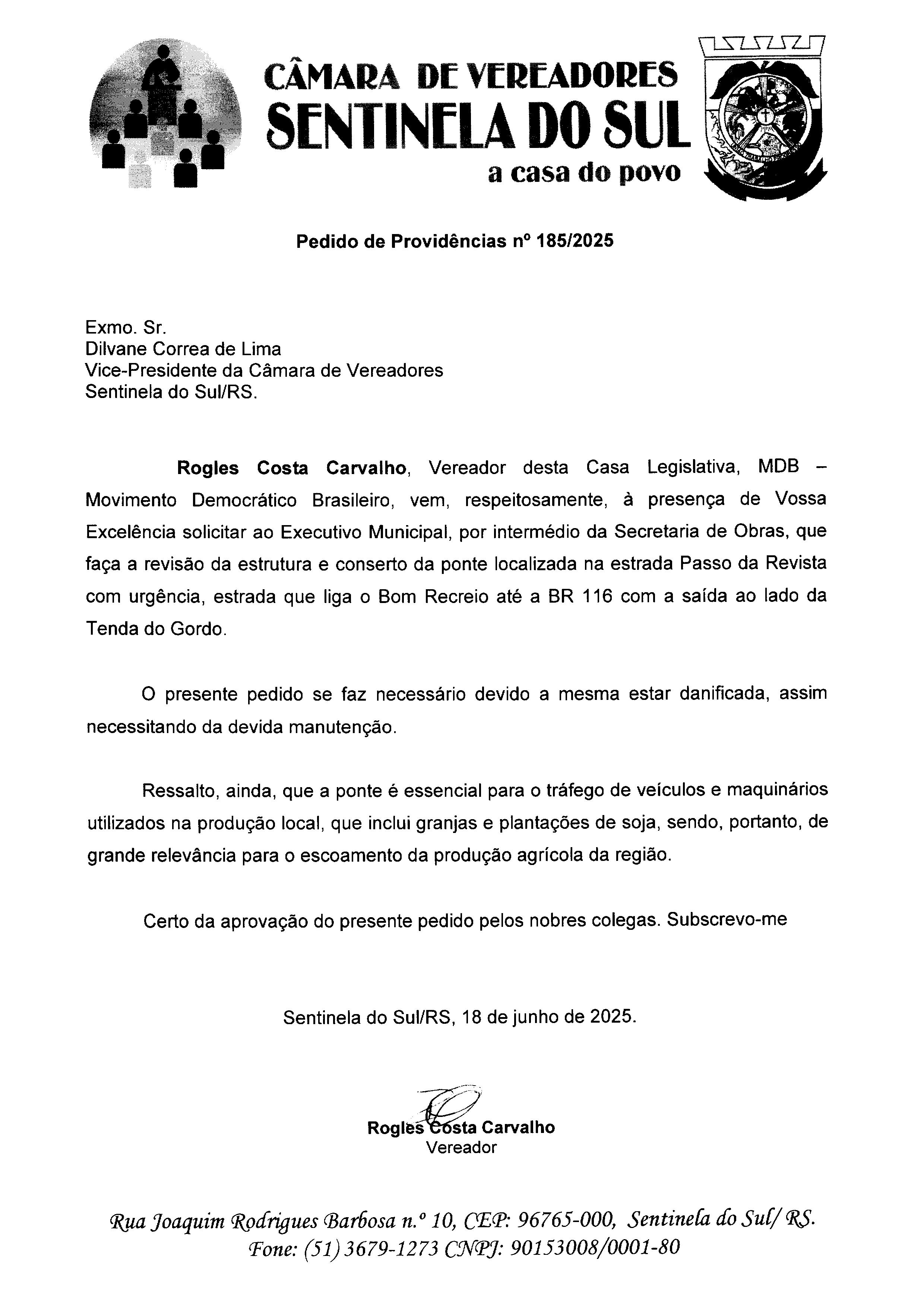 Pedido de Providências nº 185/2025