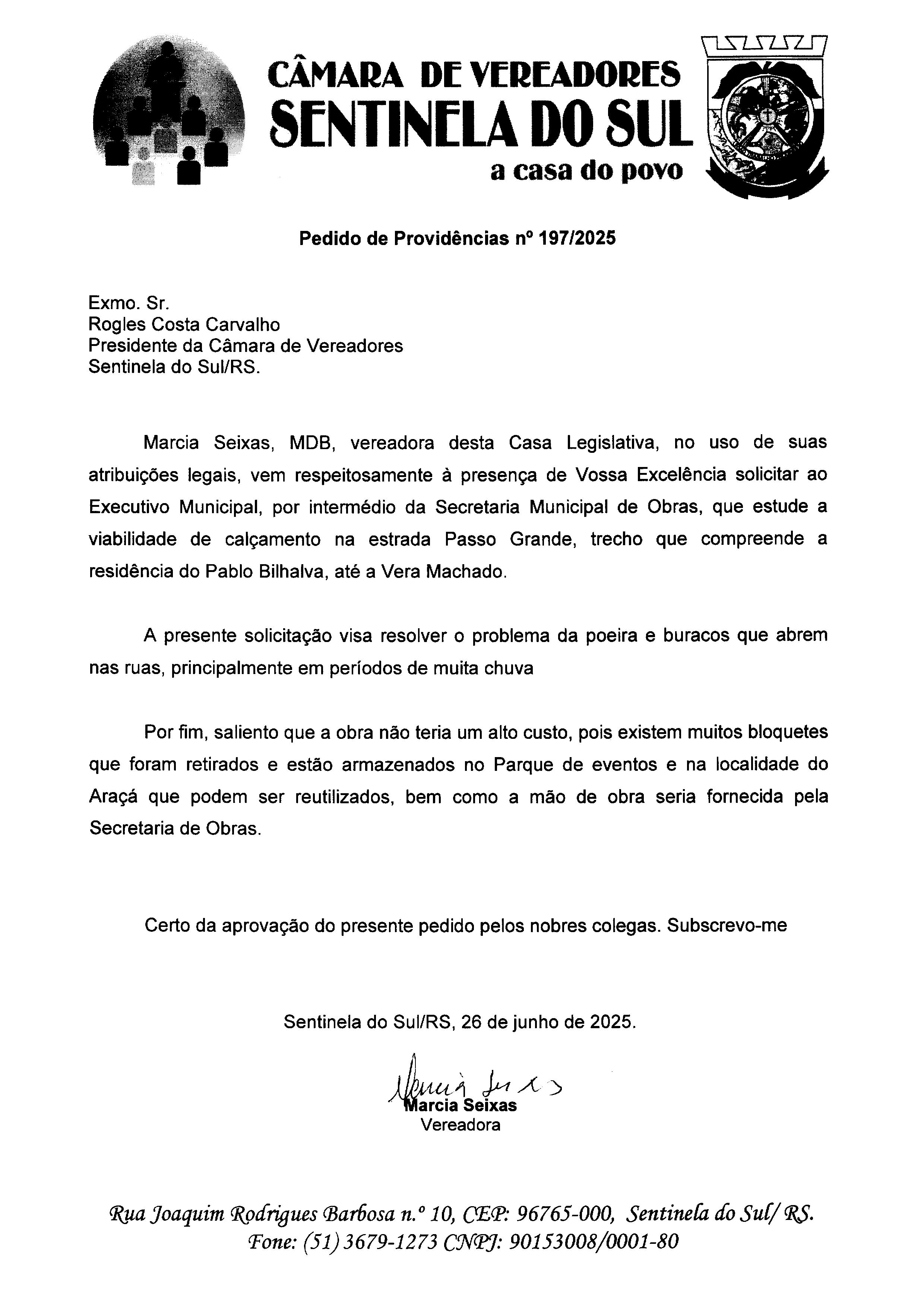 Assunto: Calçamento na estrada Passo Grande, trecho que compreende a residência do Pablo Bilhalva, até a Vera Machado.