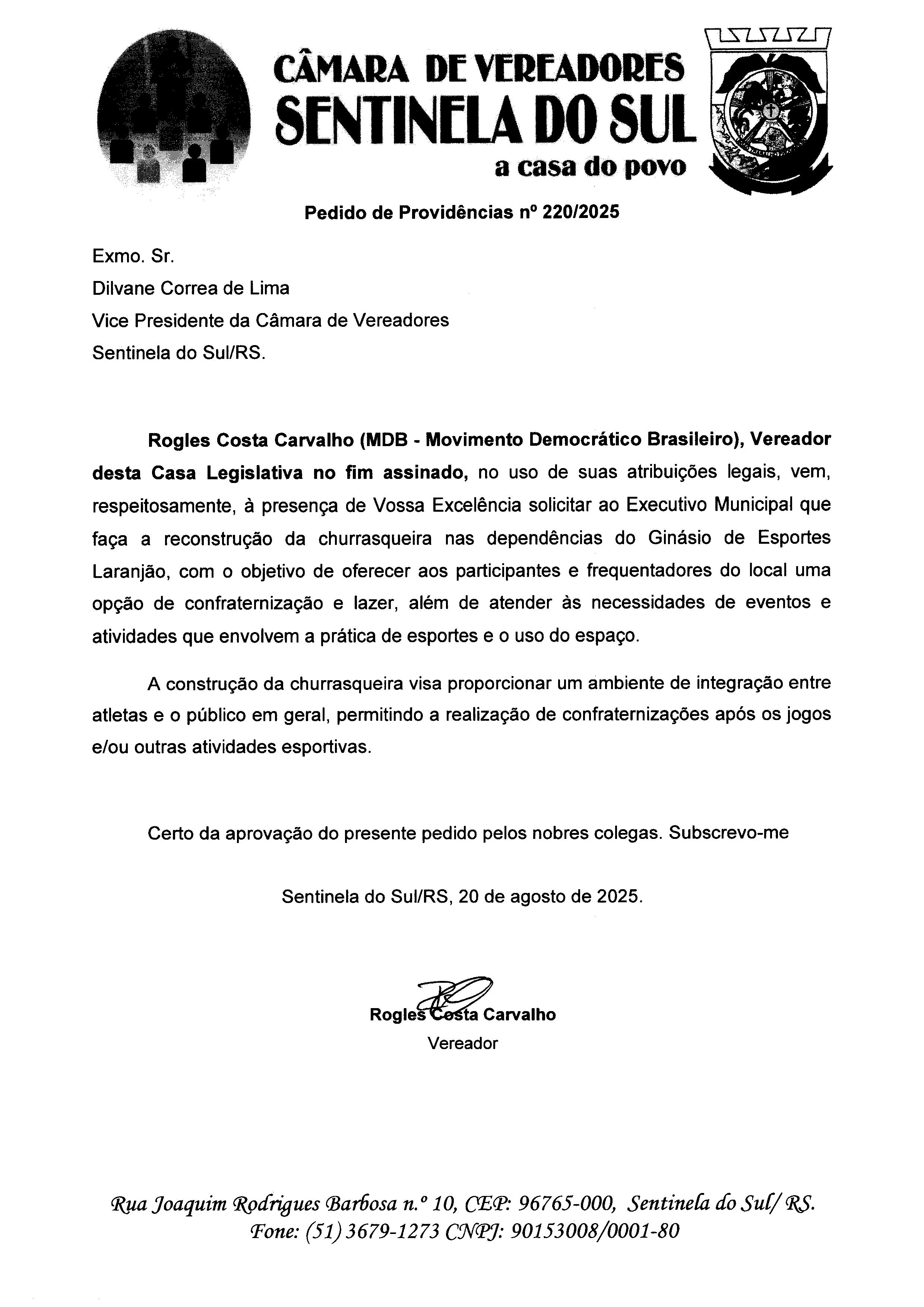 Autoria: Vereador Rogles Costa Carvalho