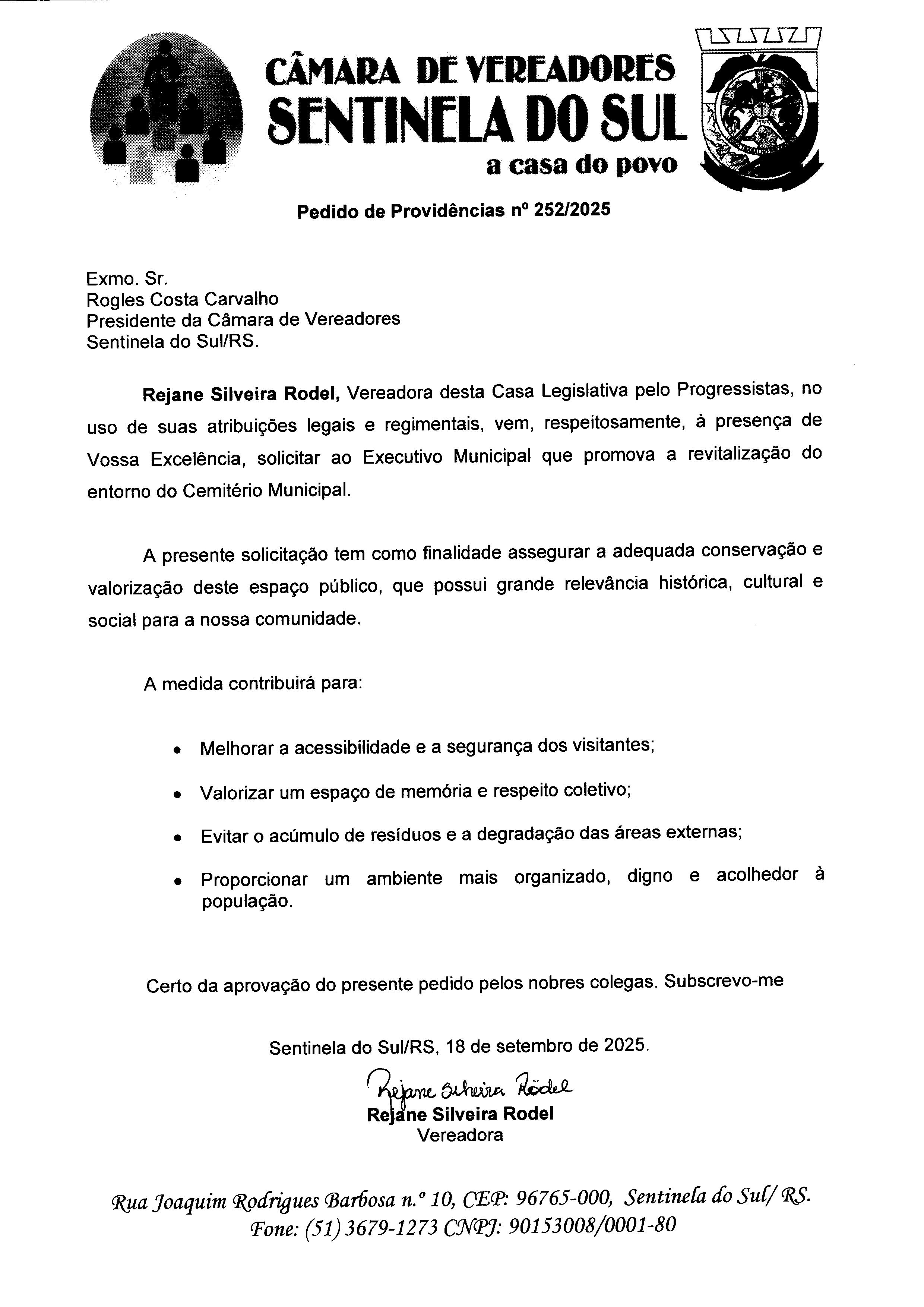 Assunto: Solicito ao Executivo Municipal que promova a revitalização do entorno do Cemitério Municipal.