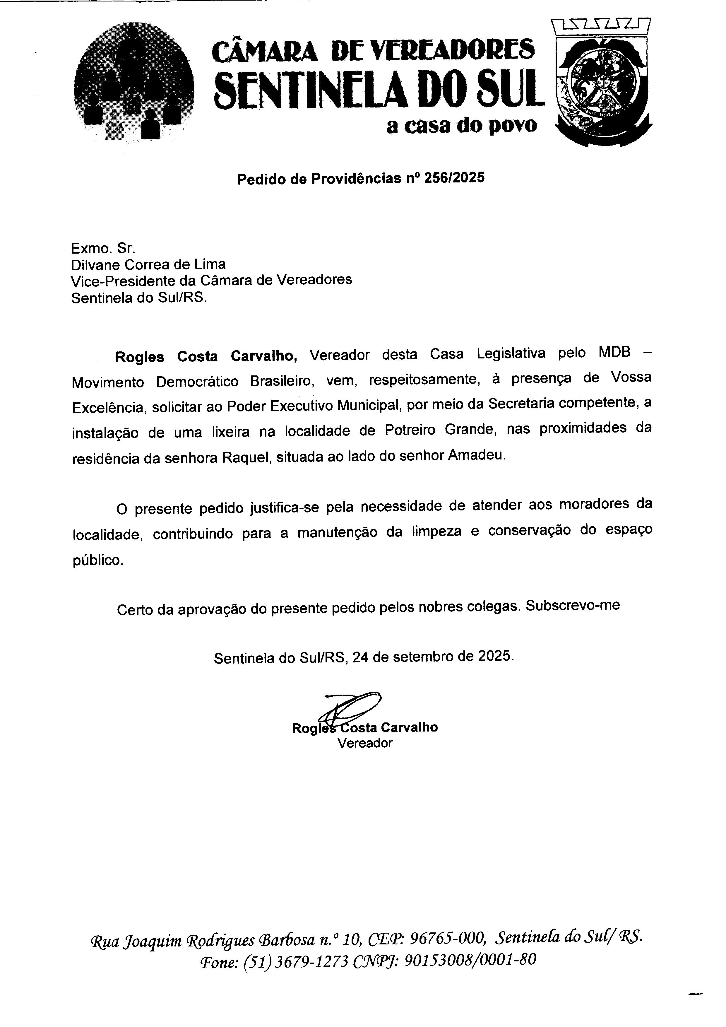 Autoria: Vereador Rogles Costa Carvalho -