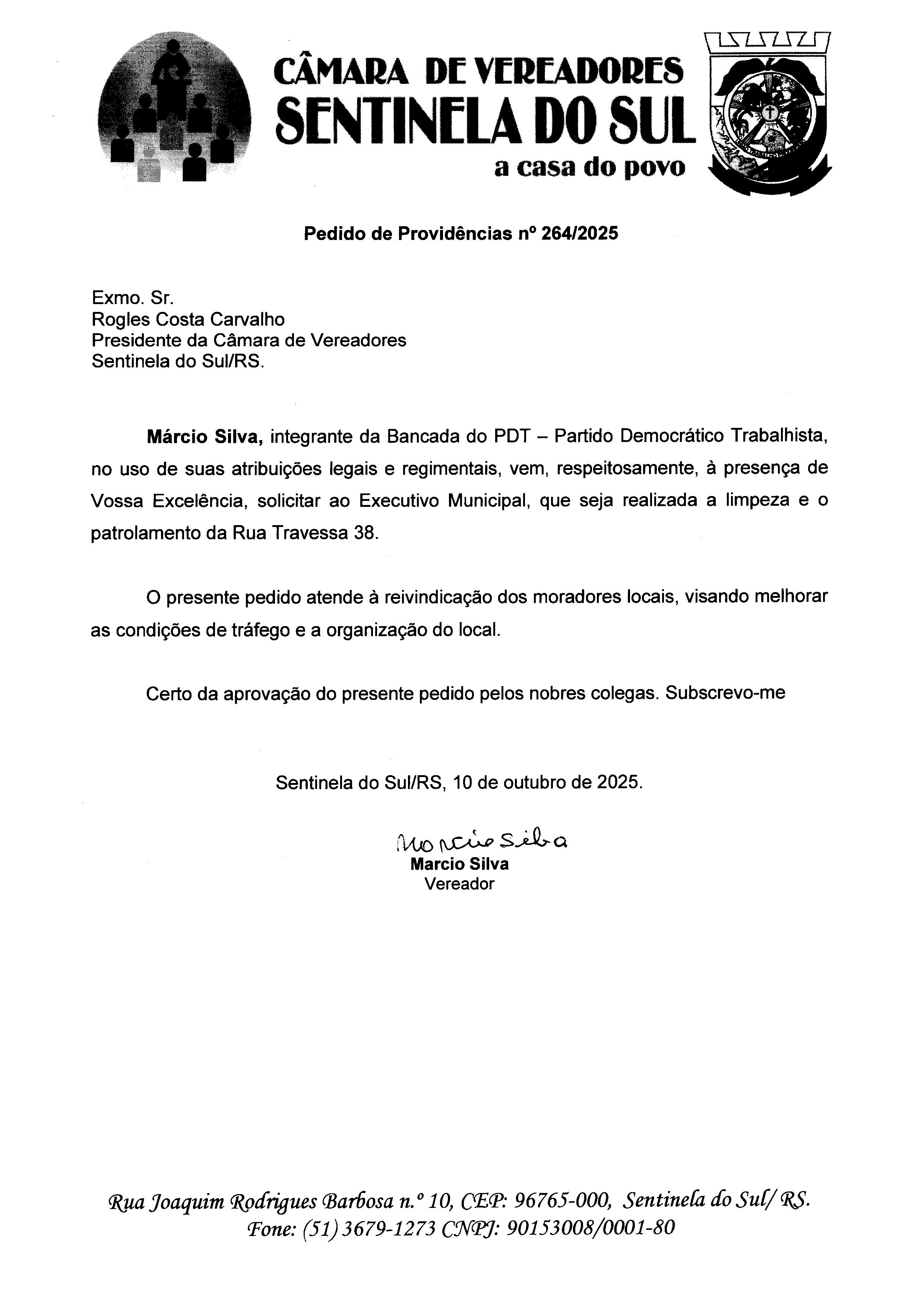 Assunto: Patrolamento e limpeza da Rua Travessa 38