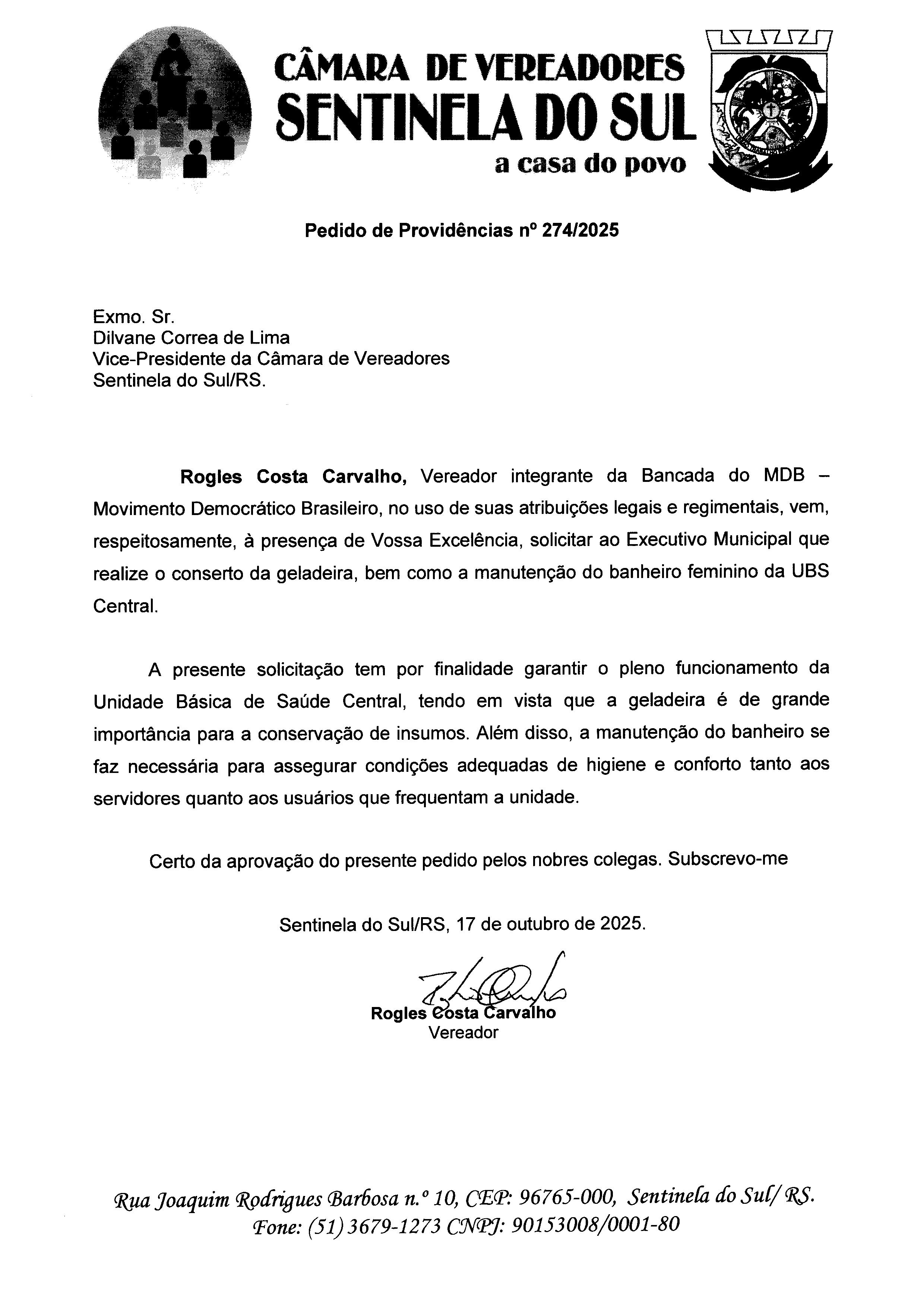 Pedido de Providências nº 274/2025