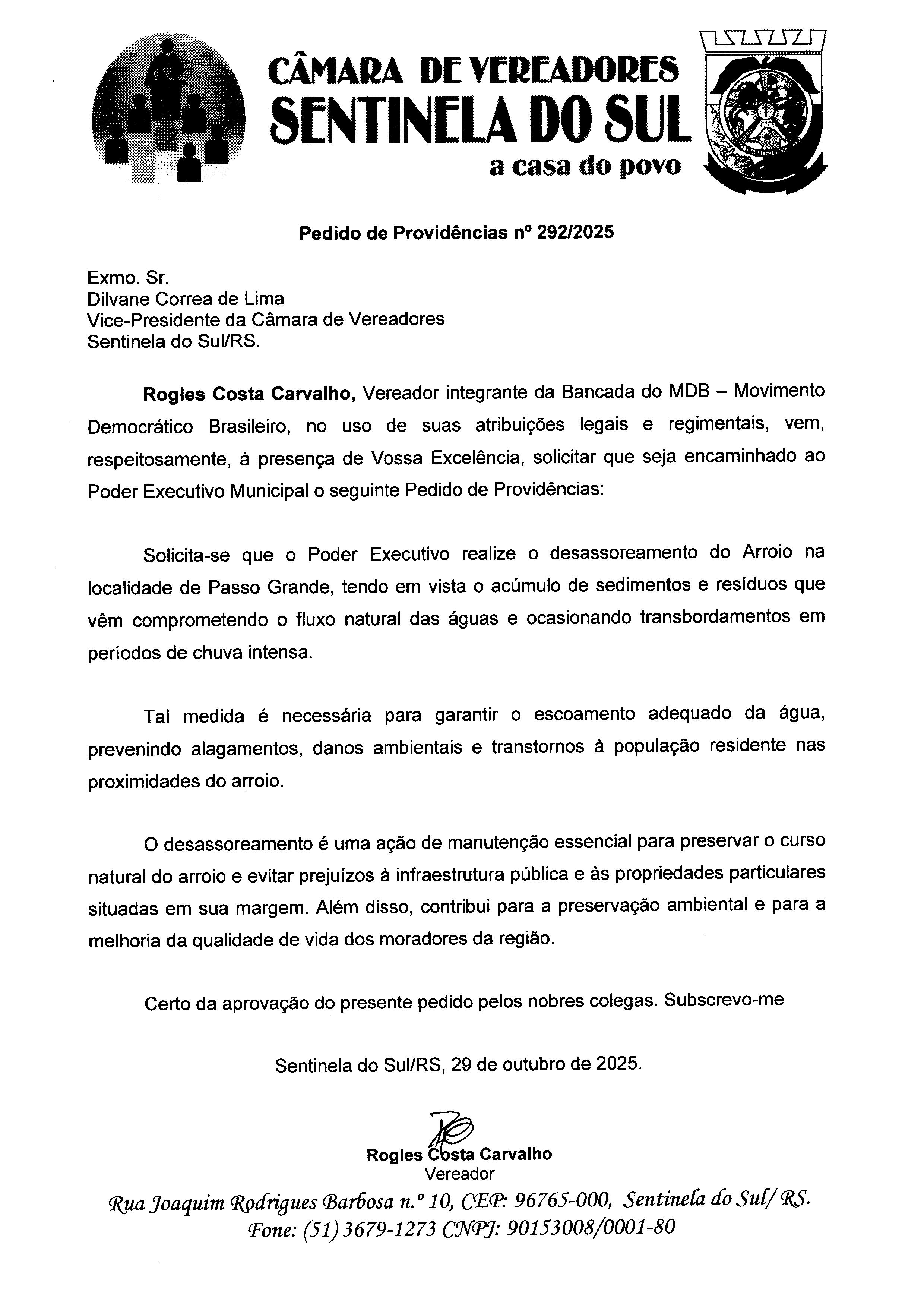 Pedido de Providências nº 292/2025