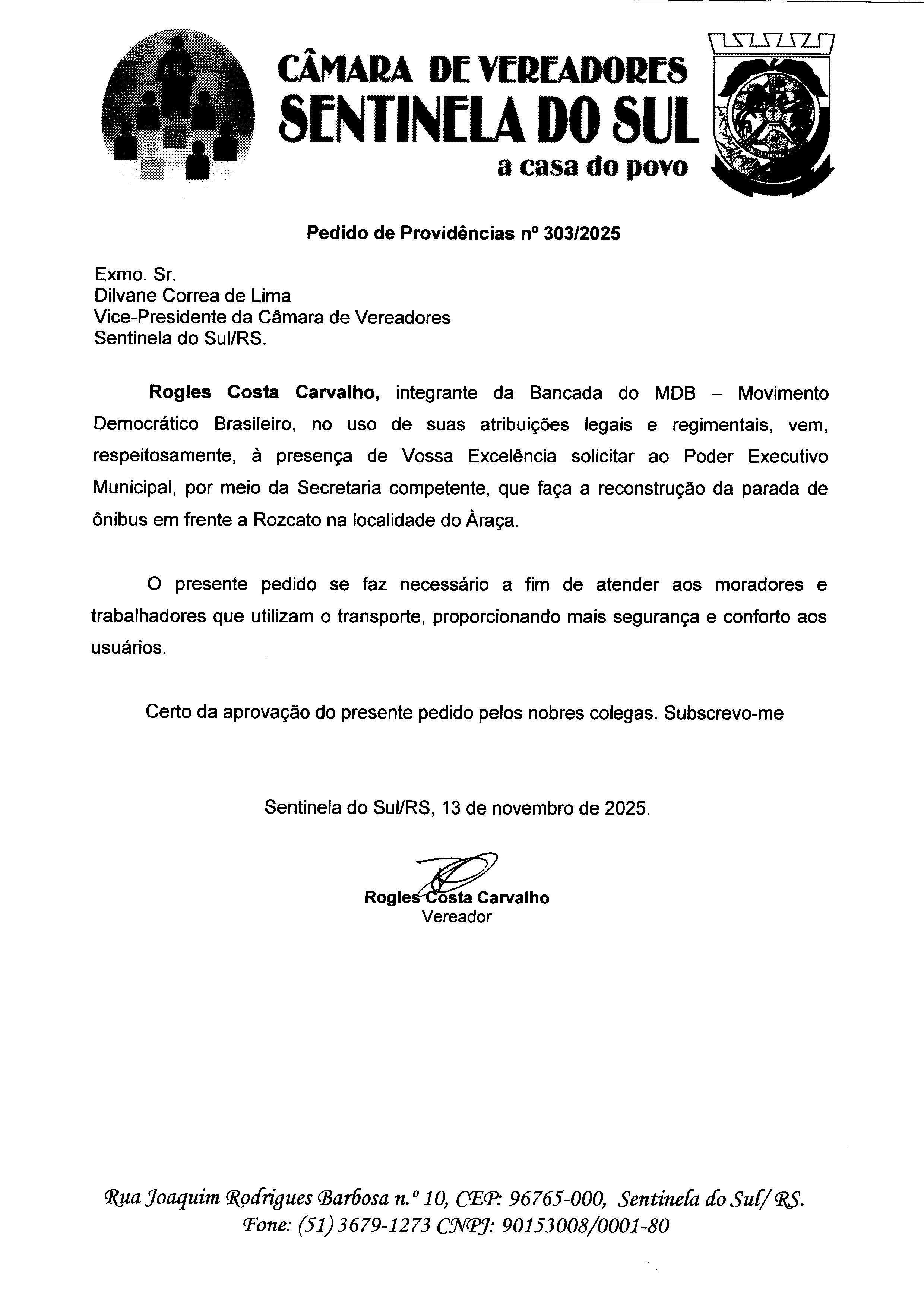 Autoria: Vereador Rogles Costa Carvalho -
