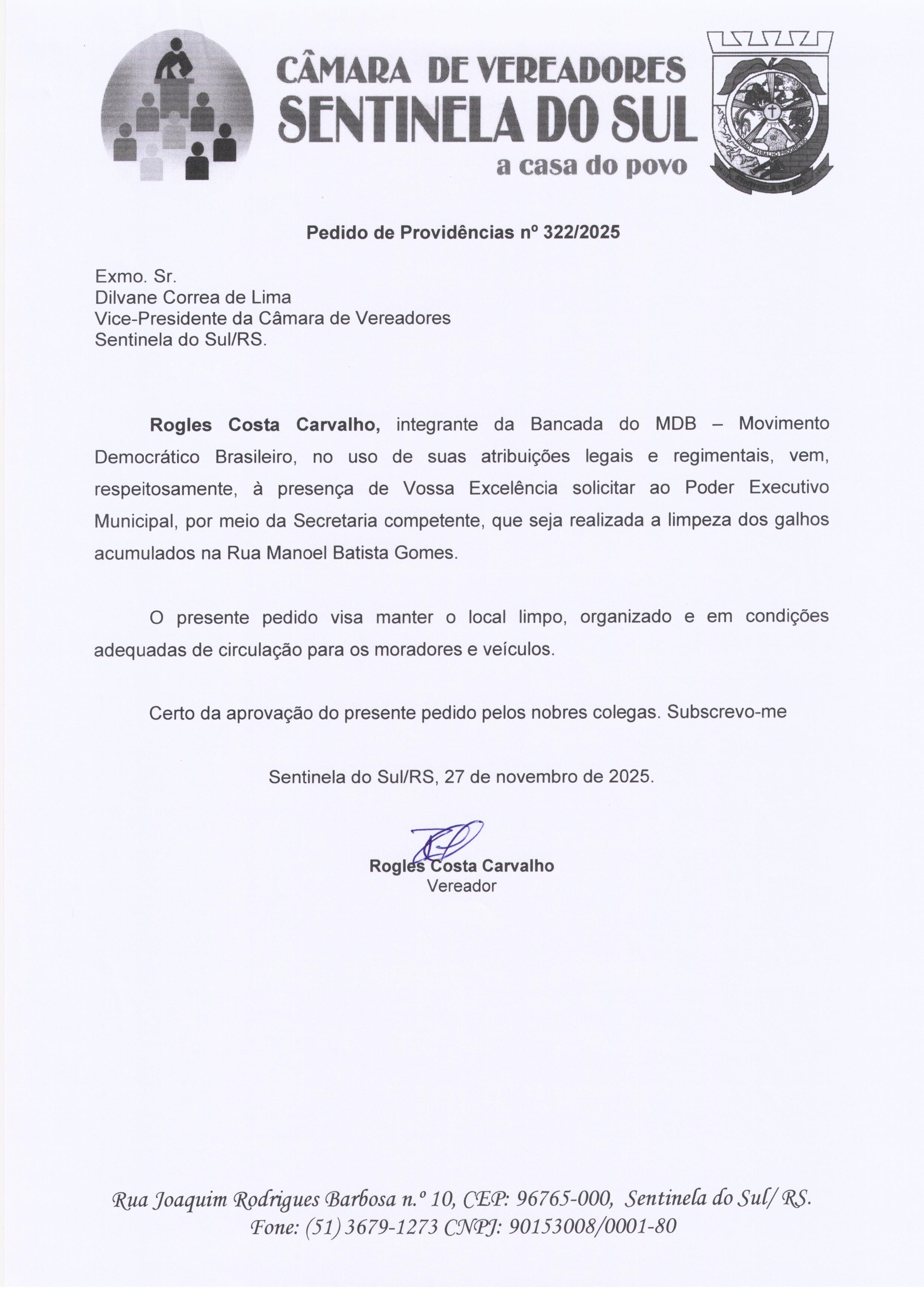 Pedido de Providências nº 322/2025