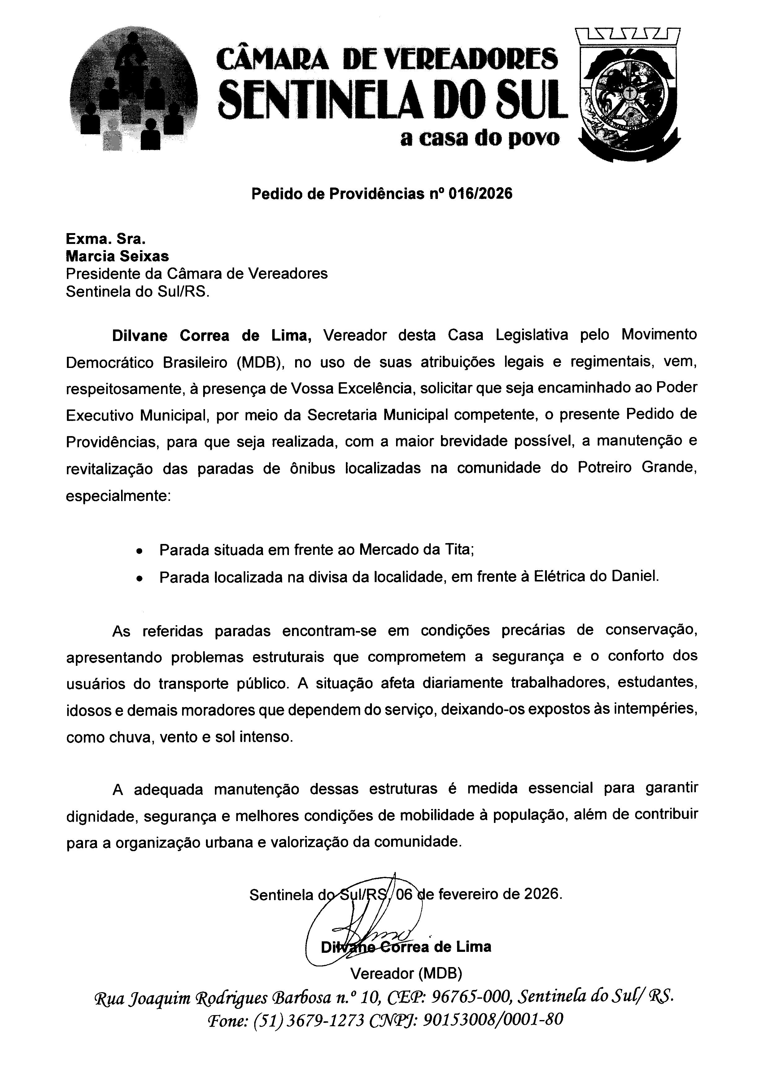 Pedido de Providências nº 016/2026
