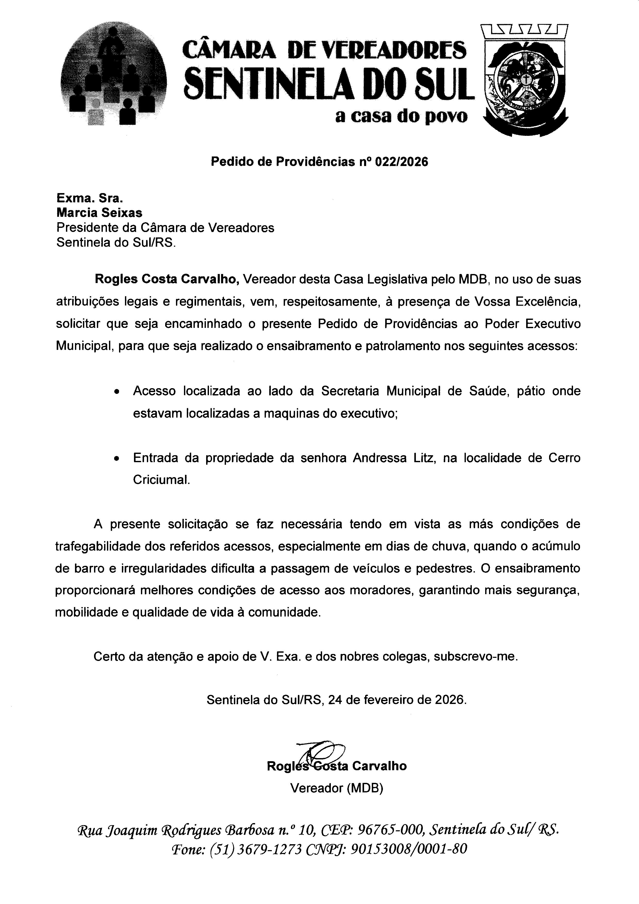 Pedido de Providências nº 022/2026