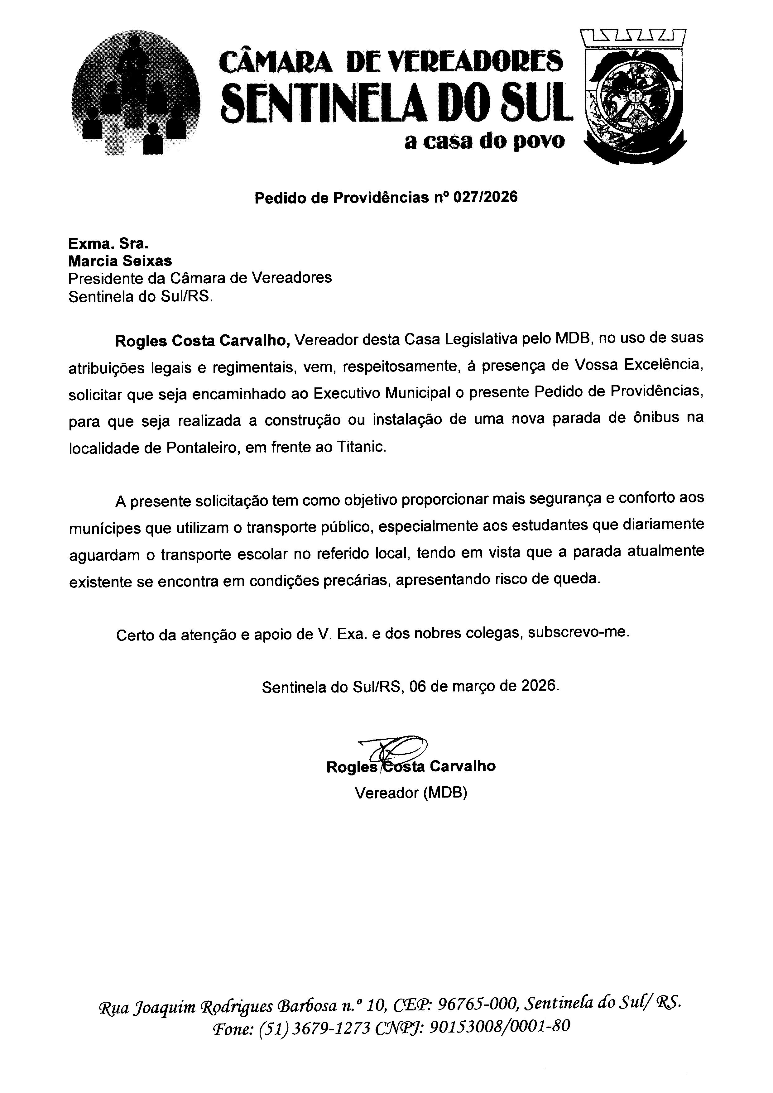 Pedido de Providências nº 027/2026