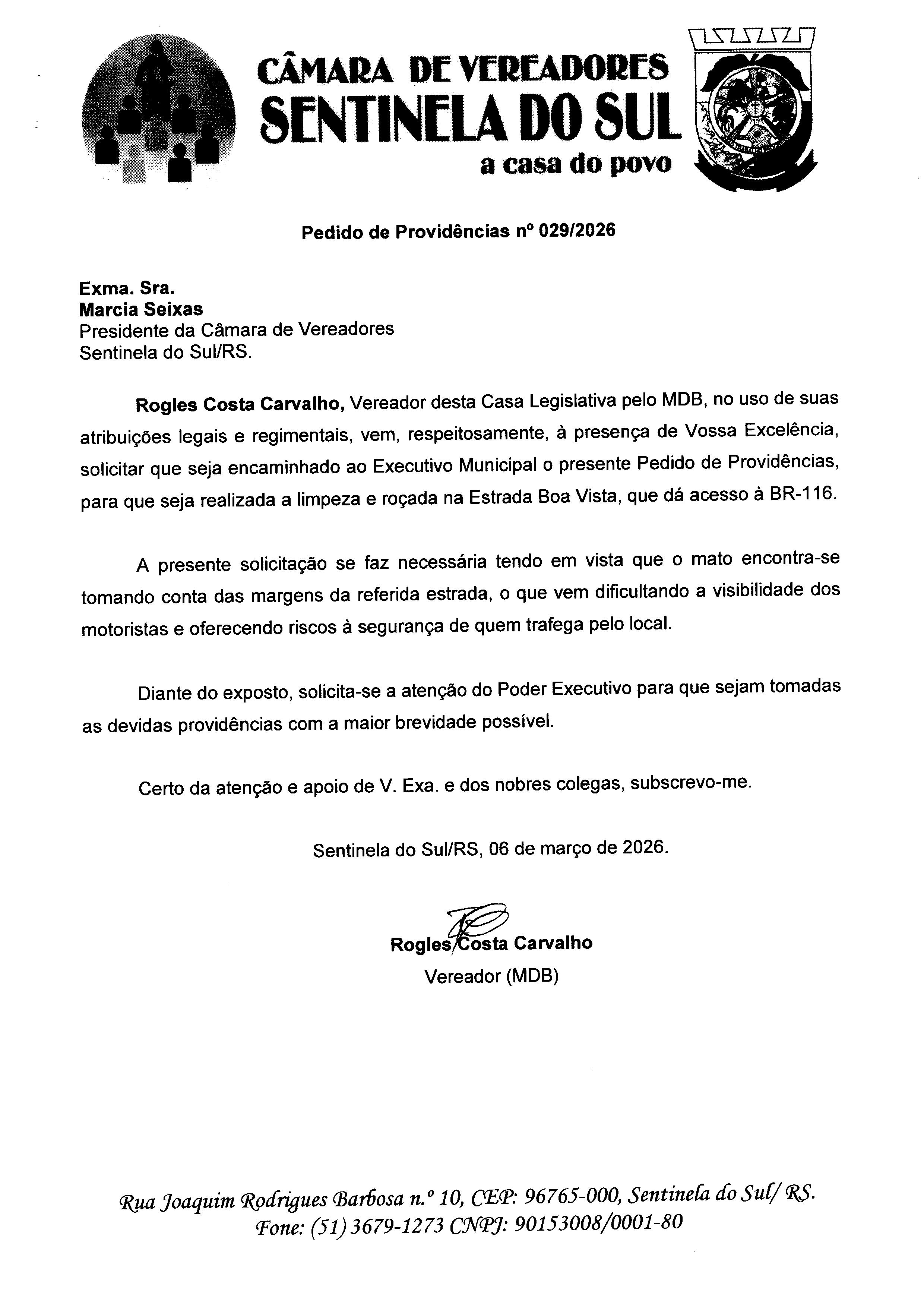 Pedido de Providências nº 029/2026
