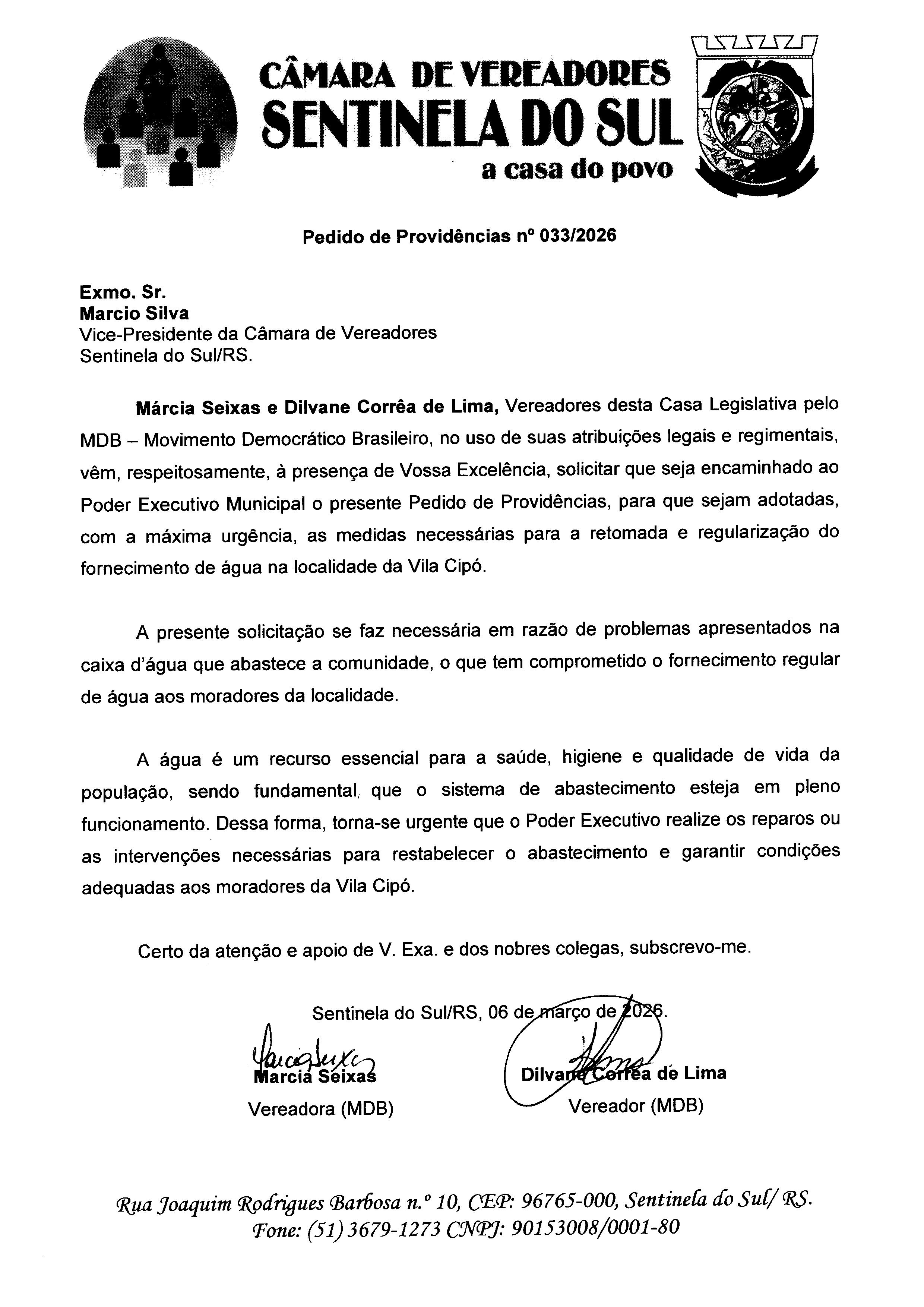 Pedido de Providências nº 033/2026
