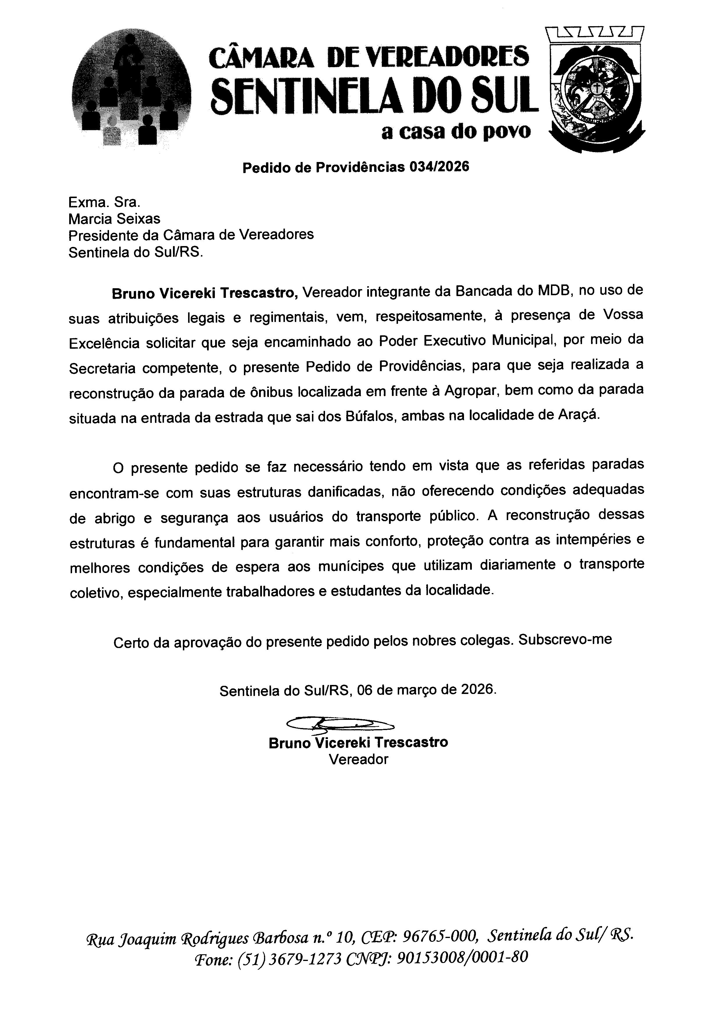 Autoria: Vereador Bruno Vicereki Trescastro -
