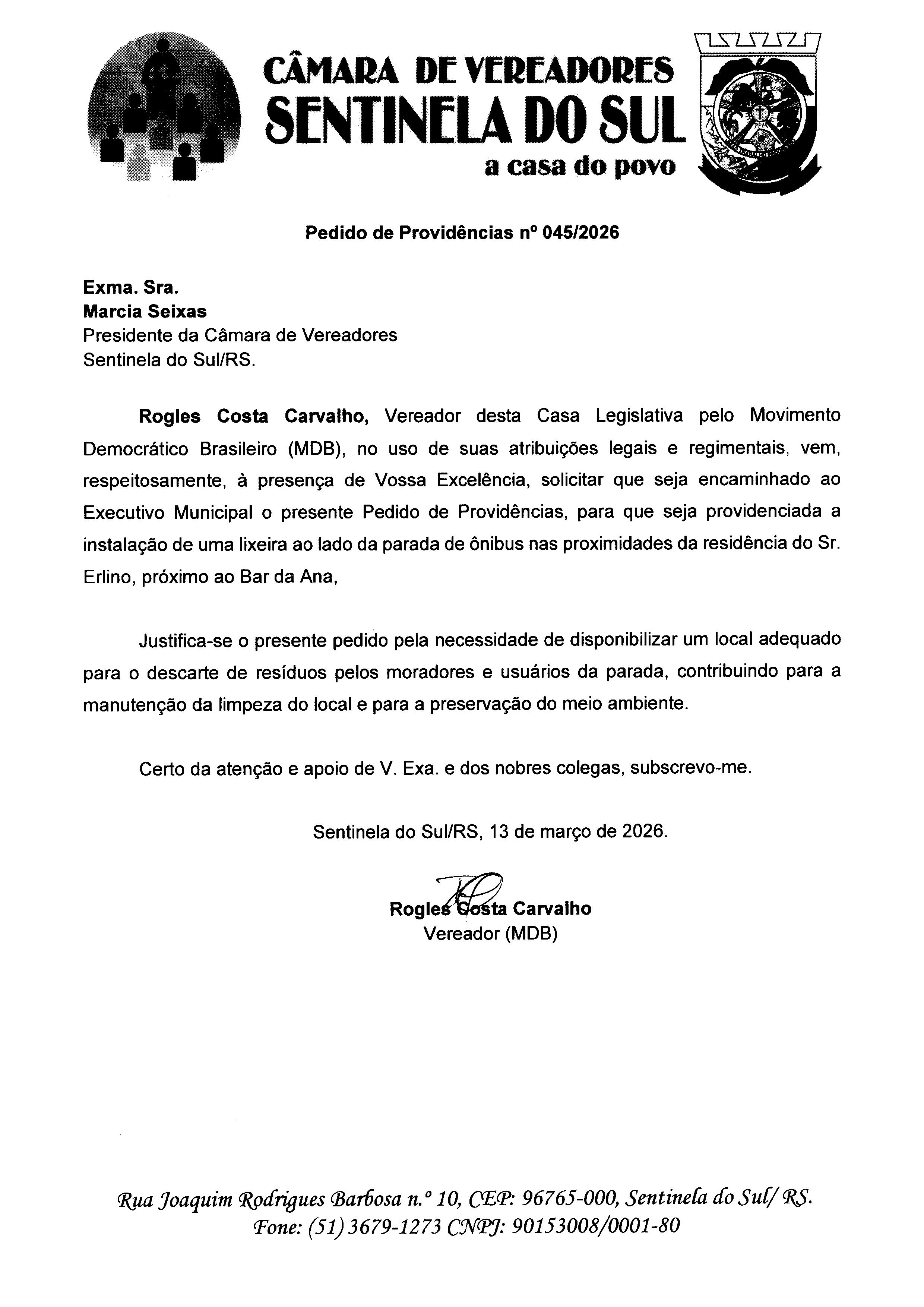 Pedido de Providências nº 045/2026