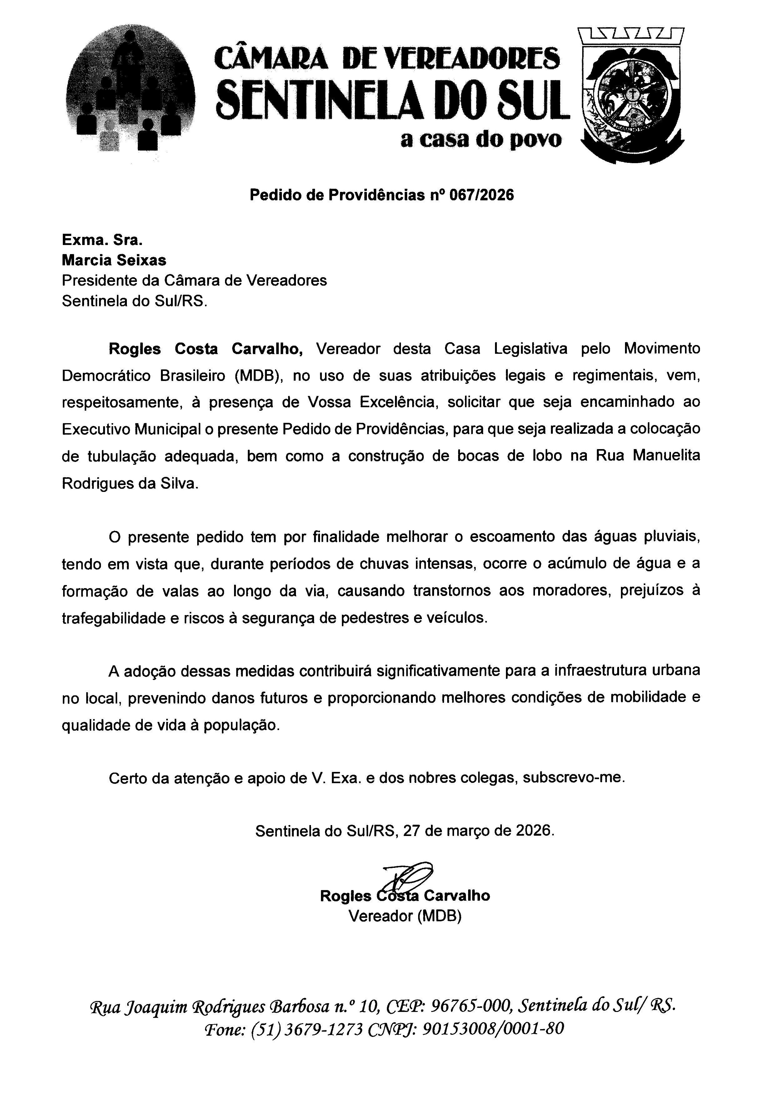Pedido de Providências nº 067/2026