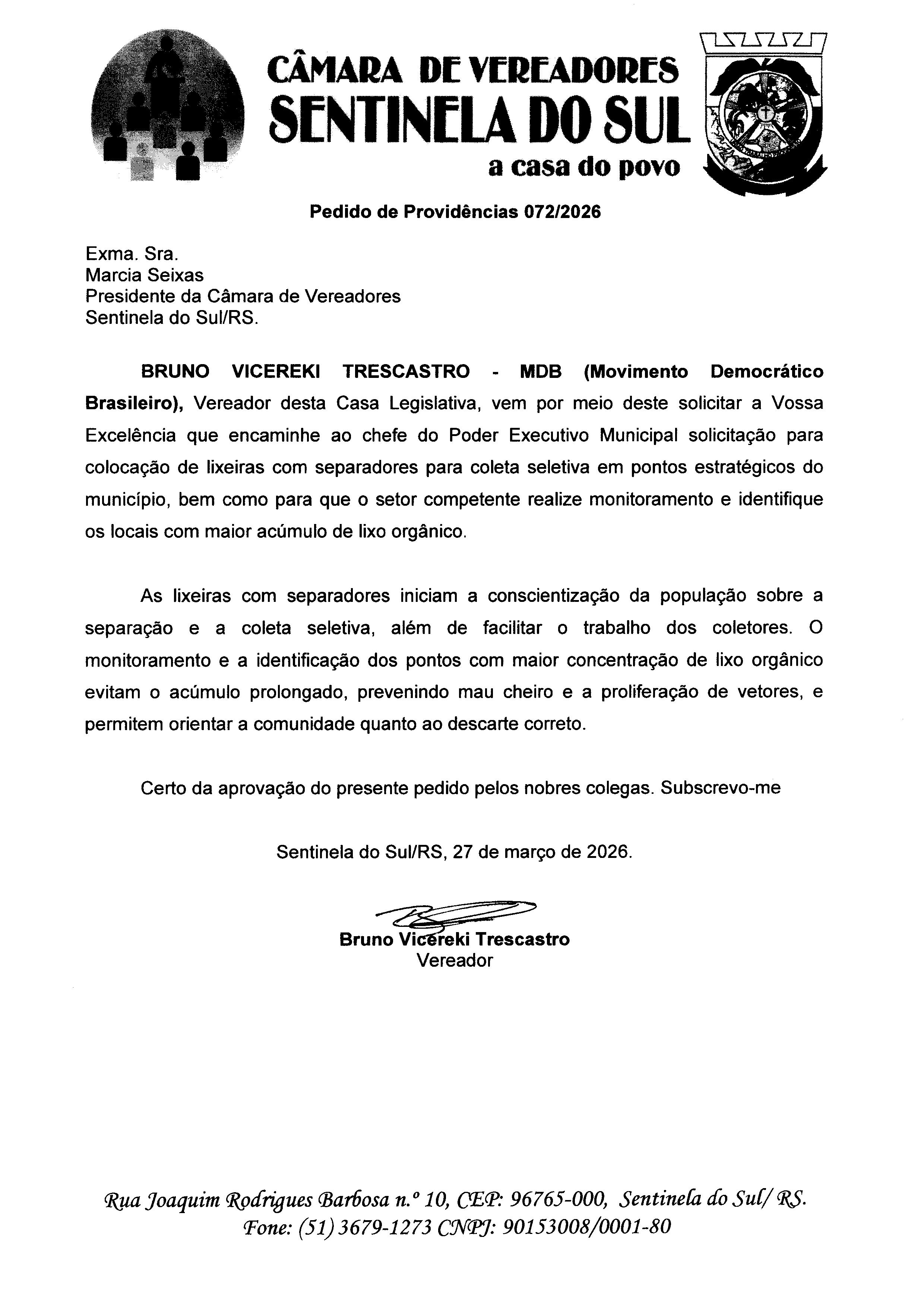 Autoria: Vereador Bruno Vicereki Trescastro -