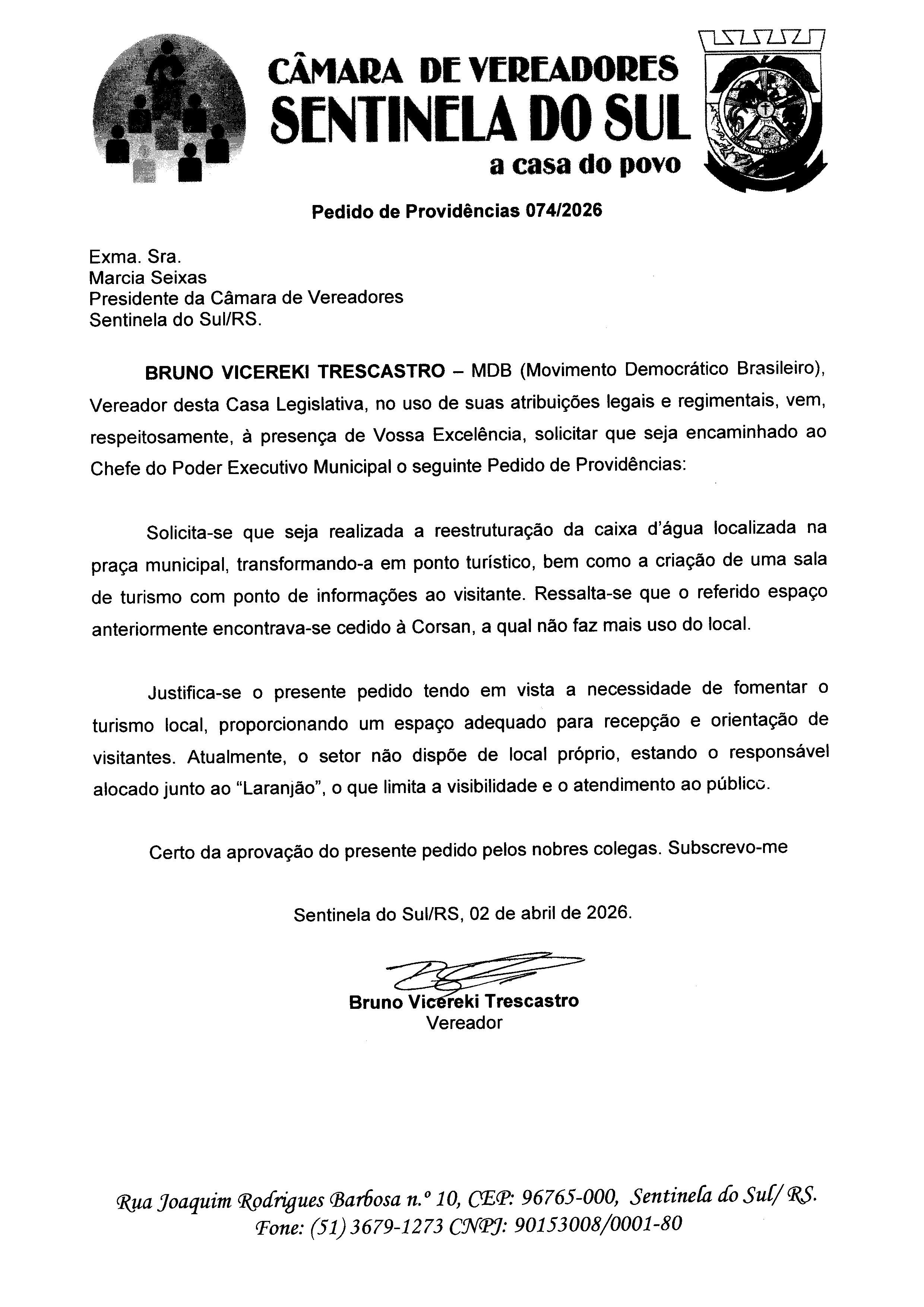 Pedido de Providências nº 074/2026