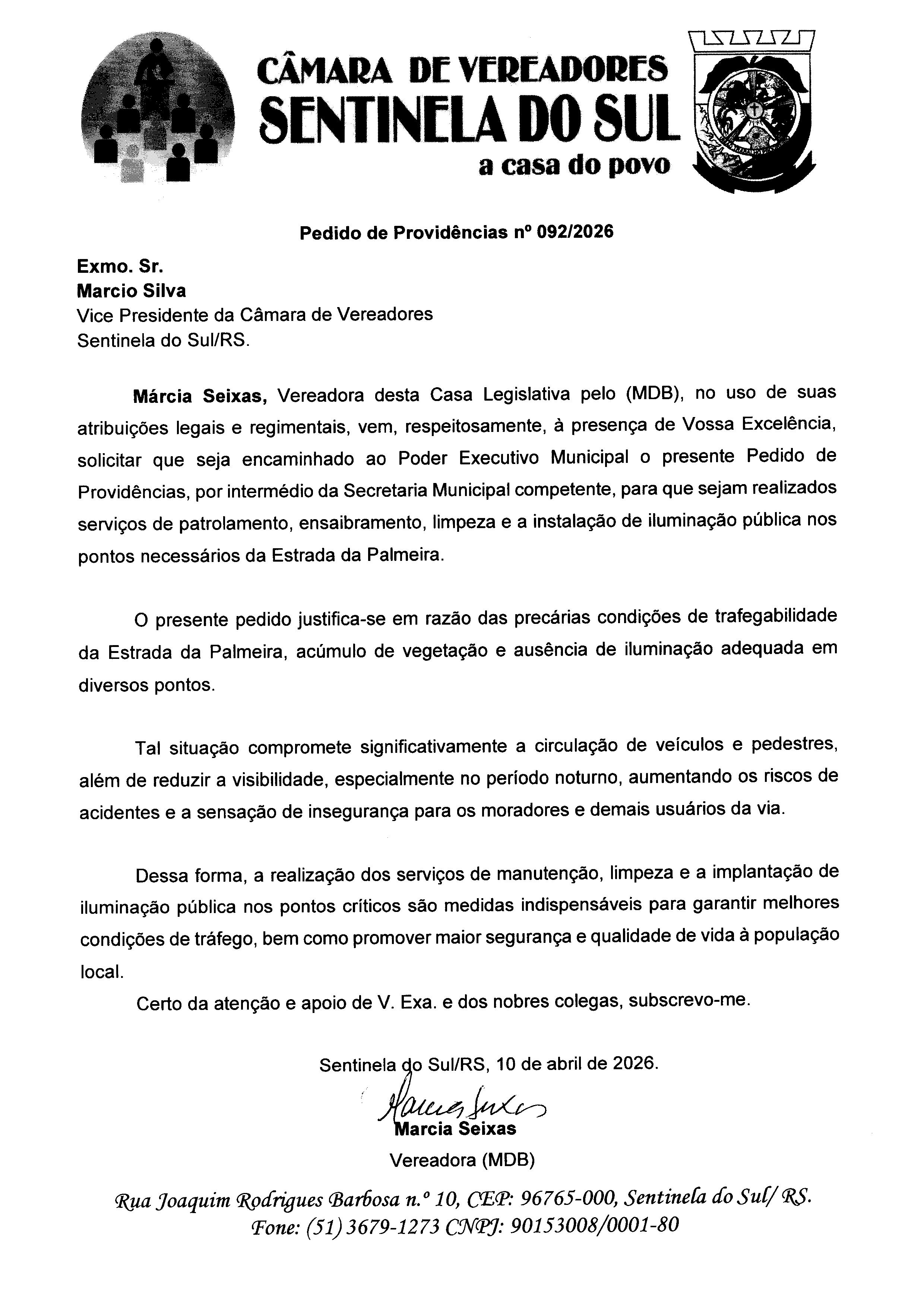 Pedido de Providências nº 092/2026
