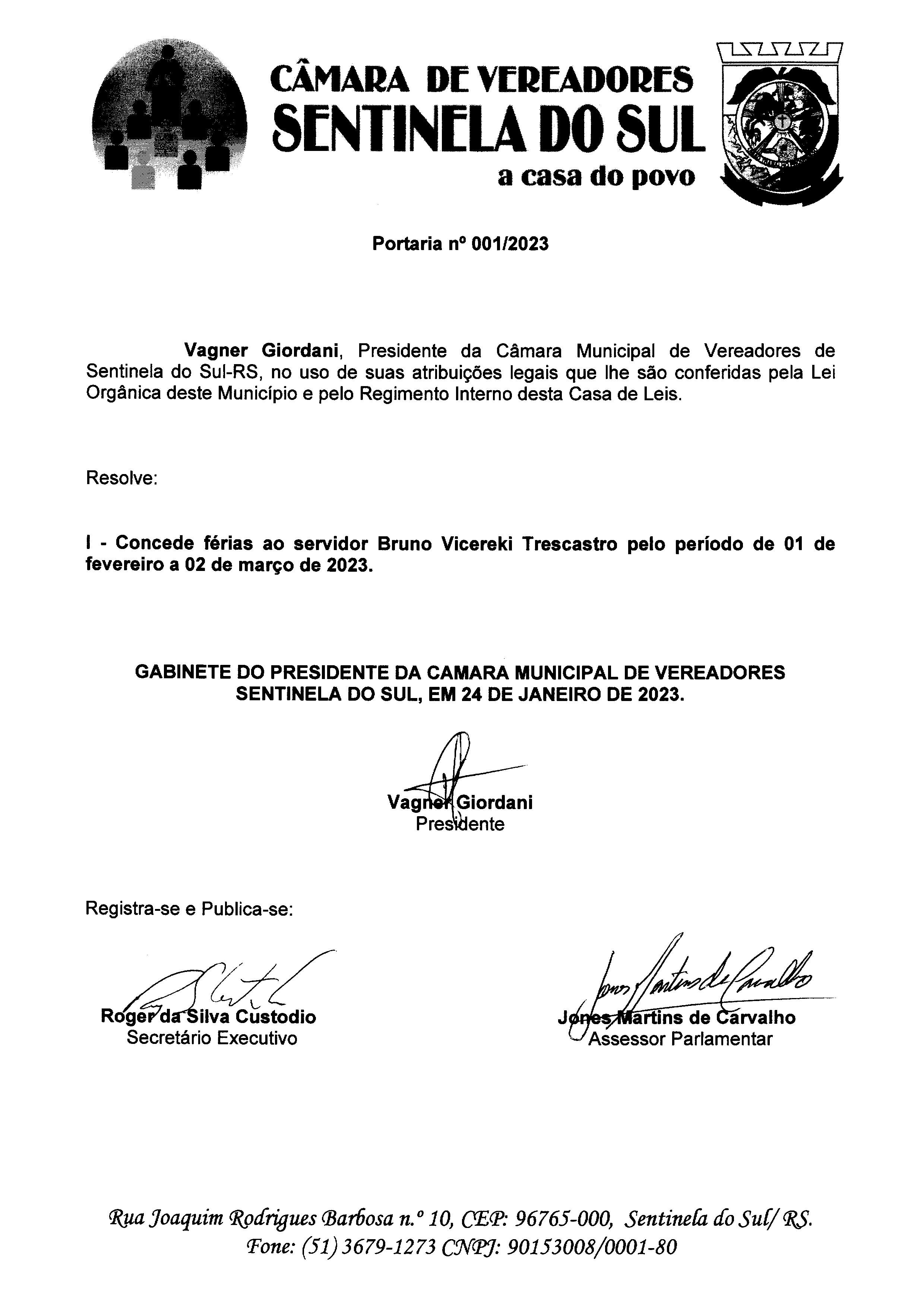 Concede Férias ao Servidor Bruno Vicereki Trescastro