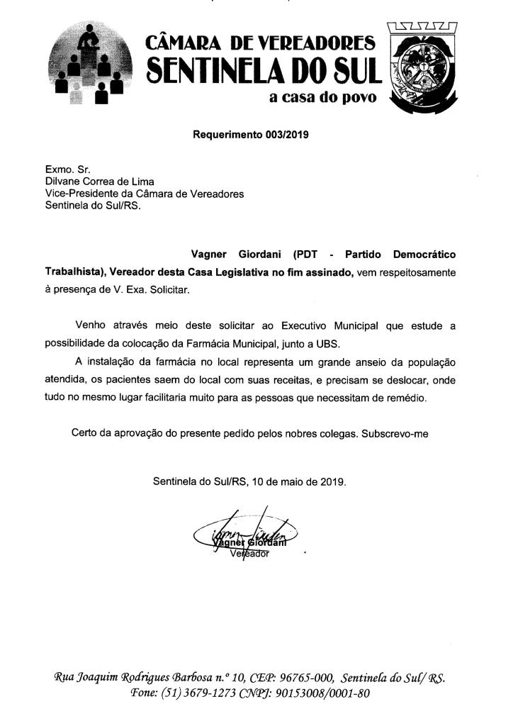 REQUERIMENTO 003/2019