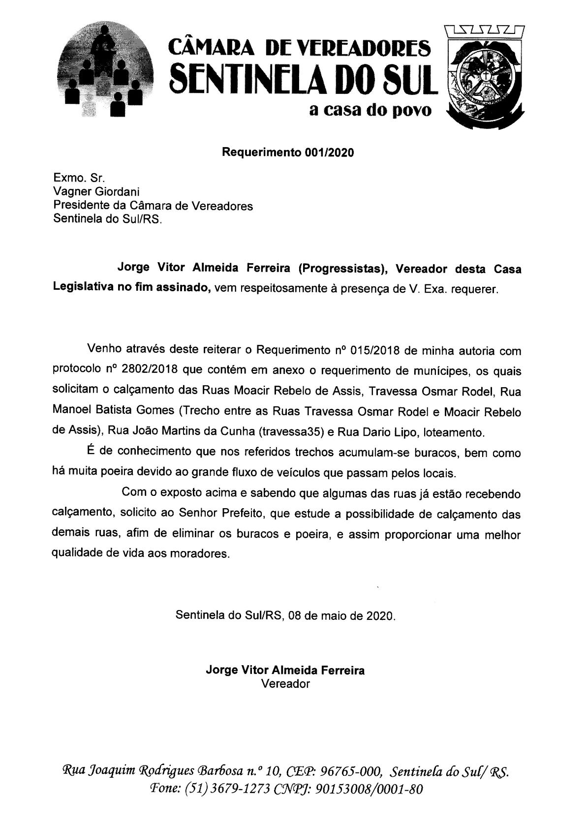 REQUERIMENTO 001/2020