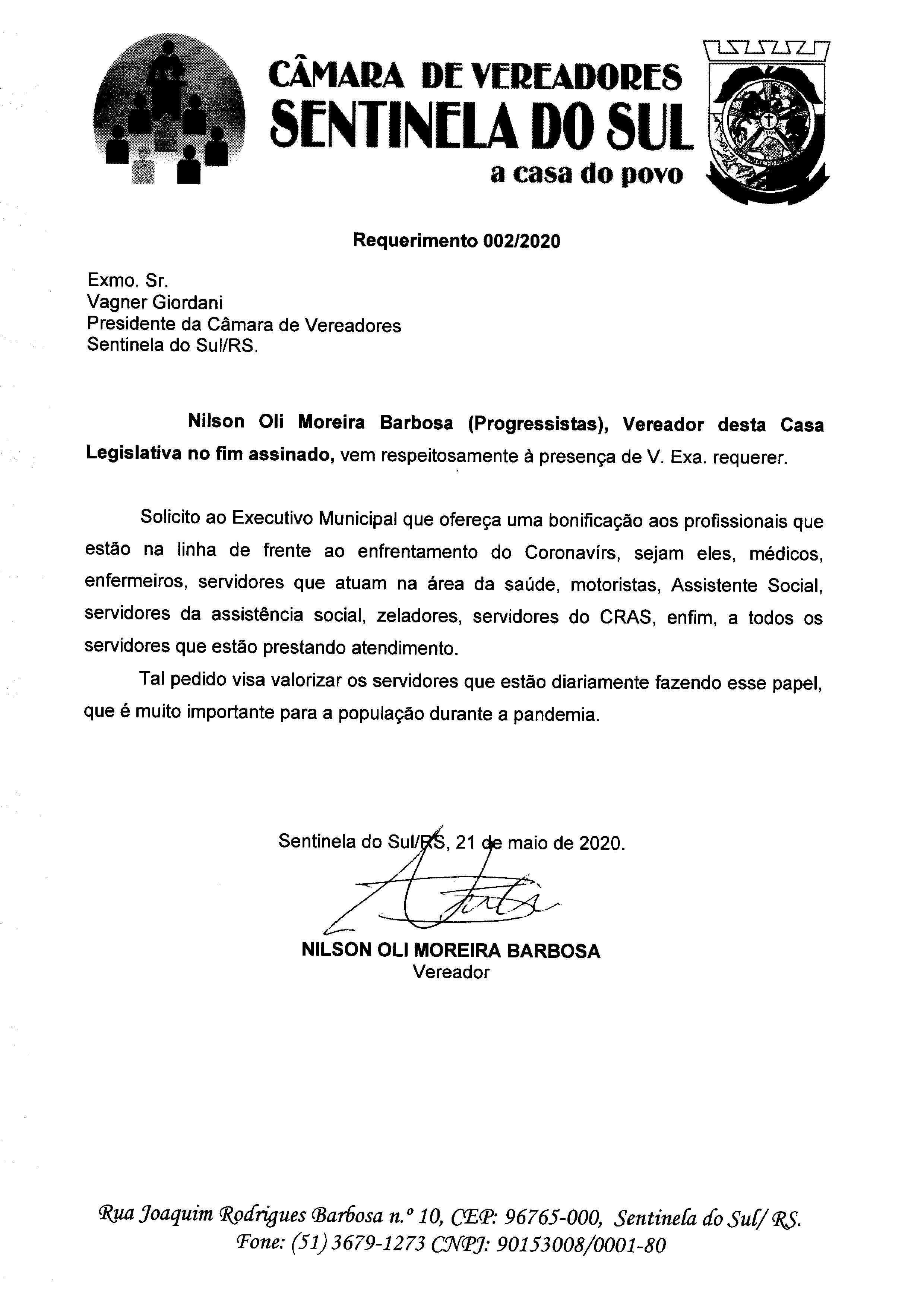 REQUERIMENTO DE AUTORIA DO VEREADOR NILSON OLI MOREIRA BARBOSA